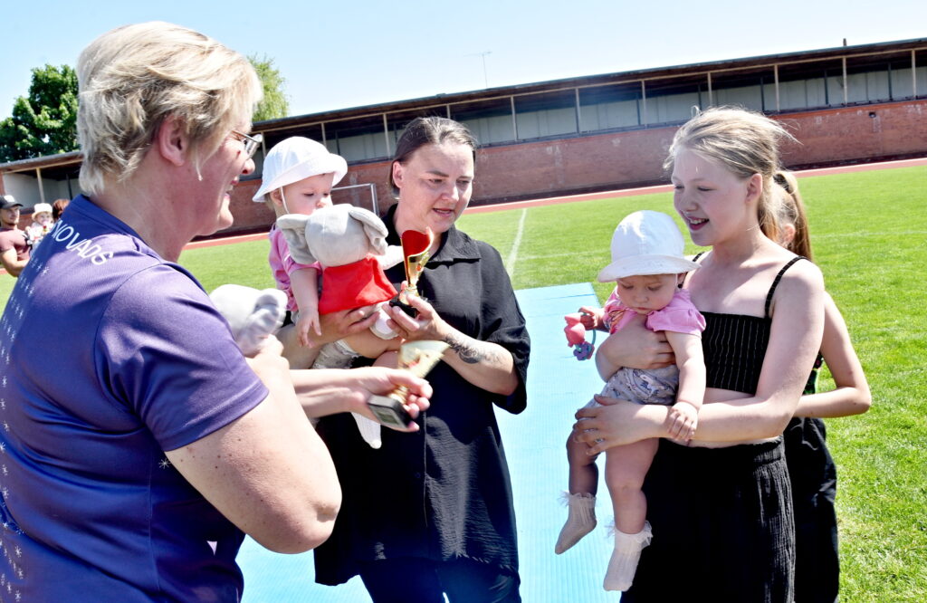 Vispirms sanākušie pārpludināja stadionu, kur bija izkārtotas piedāvās atrakcijas, bet pēc tam sāka pulcēties pie sacensību vietas. Pirmā bija skriešanas disciplīna, kur piedalījās sākot no vecuma grupas līdz diviem gadiem, līdz deviņgadniekiem, kuri jau paši piedalījušies dažādās sacensībās. Ja pirmajās disciplīnās brīžiem vecākiem bija jāpievērš skrējēju uzmanība, jāgaida pie finiša līnijas un jāaicina finišēt, tad pēdējie skrējēji jau finišēja kā vēja brāzmas.