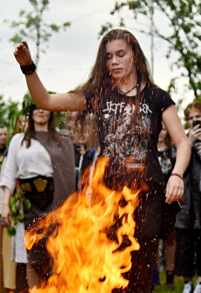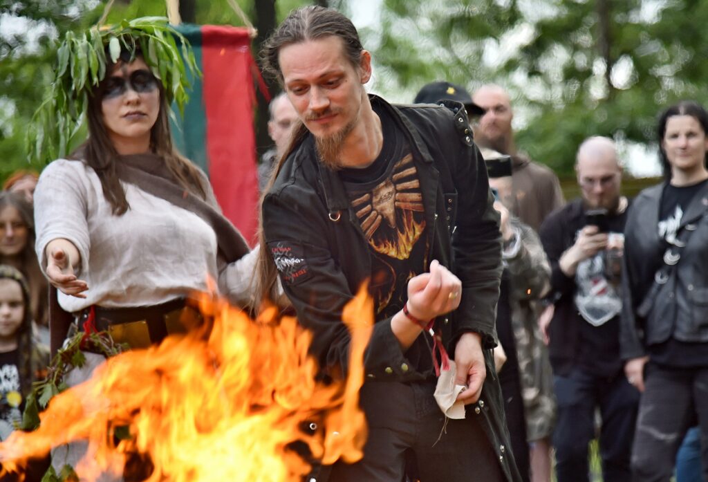 Pa vidu starp uzstāšanās reizēm notika uguns rituāls Senajā ciemā. Senais krīvs ar savu rituāla komandu aizrāva daudzus skatītājus – ugunī dieviem ziedoja gan maizi, gan alu, gan bultas uzgali, gan daudz ko citu, lai pielabinātos Pērkonam un tas nestu labu laiku. Par rituāla veiksmi grūti spriest – no vienas puses brīžiem vēl lija, bet kopumā laiks bija labs un apmeklētāji to izbaudīja.