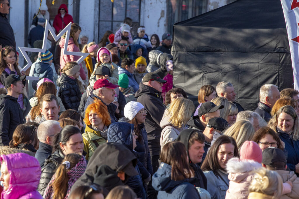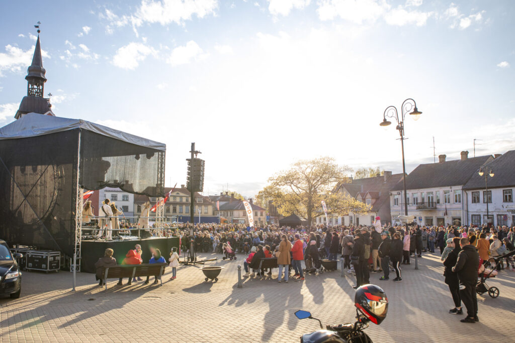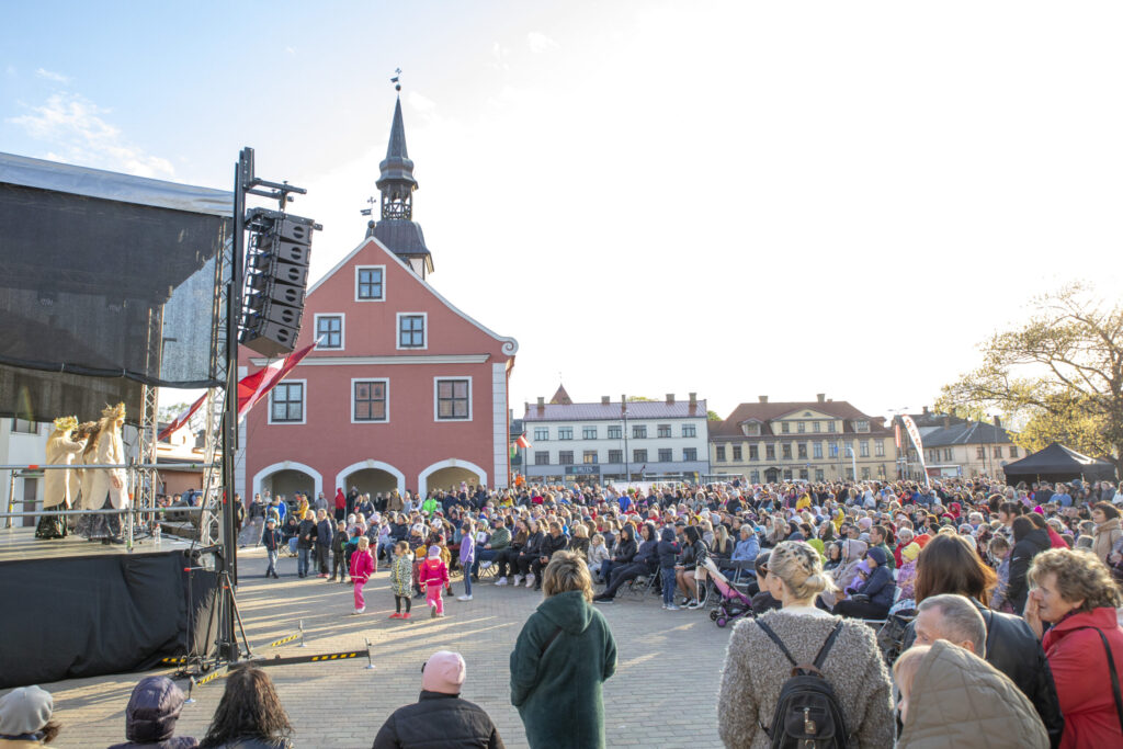 pulcēja pilnu laukumu baušķenieku un pilsētas viesu.