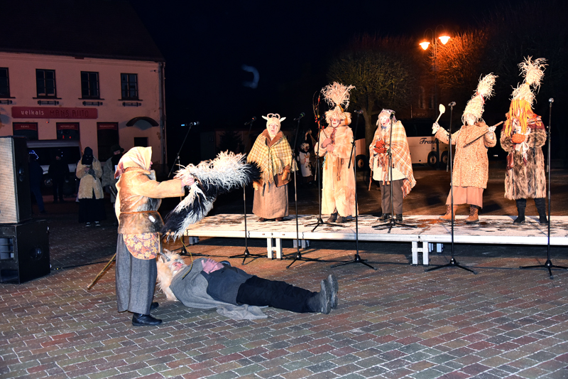 Sestdien ar tradicionālo masku daudzveidību varēja iepazīties arī Bauskas pilsētas iedzīvotāji. Dzestrā tumsiņā Rātslaukumā no malu malām plūda dažādi līdz tam neredzēti maskoti personāži. Nu, piemēram, bārbaņi. Tērpušies pelēcīgās drānās, ar garenām ļipām; sievām savādi sasprausti lakati, vīriem pīti grozi un ragu pusmēneši uz galvas. Uzvedība imitē aitas, svētībai dala svaigi cirptu aitas vilnu. Izrādās, tie ir seni lībiešu masku tēli, kuru uzdevums nest auglību un svētību aitu saimēm. Šādu masku tradīciju uzgājuši ziemeļu kaimiņi igauņi, bet Latvijā ar to iepazīstina Vidrižu folkloras grupa «Delve».