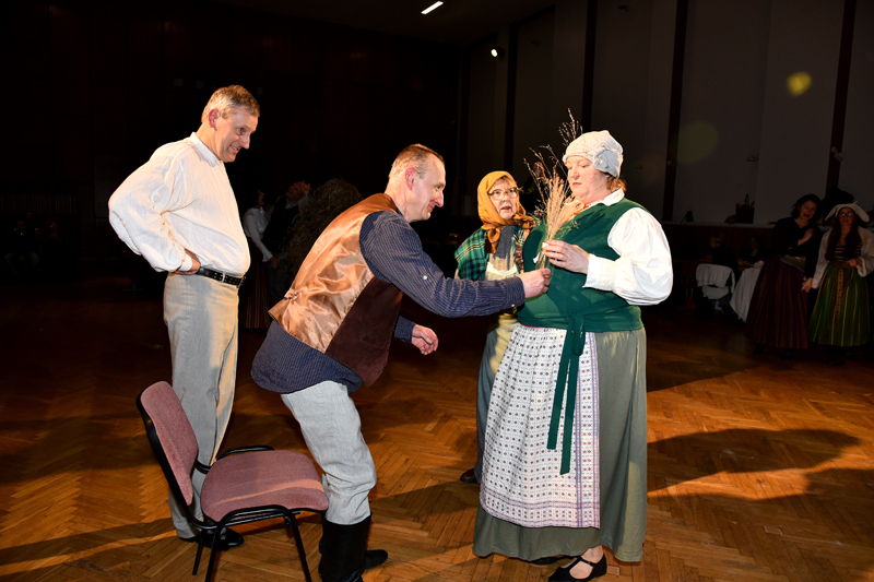 Pa vienam vien skatītāji tika aicināti zāles priekšā pārtapt te par dzērvi, kazu, te čigānieti un pat nāvi. Interesants ir mazā vīriņa tēls, kuram ar apģērbu tiek nojauktas normālās proporcijas. Žaketi ģērbj ap vidukli, bet galvu un rumpi pārklāj ar audumu, izveidojot lielu galvu. Mazā vīriņa neatņemama līdzgaitniece ir garā sieva. To veido, uz kāta uzliekot maskas galvu, bet visu ķermeni nosedzot ar lakatiem un brunčiem.