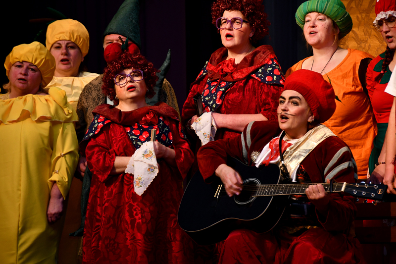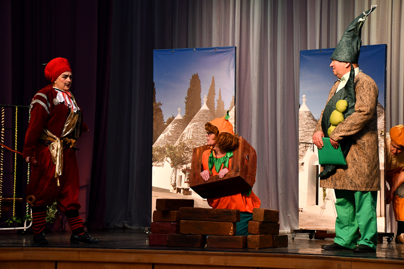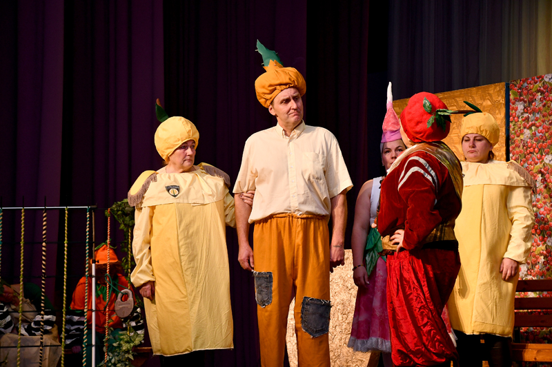«Žūrija uzteica kostīmus, mūzikas izvēli un citas lietas, bet vairāk esot jādomā tieši par tēliem – kur tie iet, kāpēc iet tur, un līdzīgi,» stāsta E. Novicka, «izrādes programmiņa arī esot amizanta, un tas esot bijis pirmais, kas žūrijai lika pasmieties.» Izrāde «Sīpoliņš» ir komēdija, kura sasaistīta ar politiku, jo tajā iekļautas dažādas situācijas iz dzīves. «Jau sesto gadu iestudēju pasakas, kurās var darboties visi mūsu aktieri,» stāsta «Dadžu» vadītāja, «vienmēr piemeklēju un pārtaisu lugas, lai ikvienam no mūsu pulka būtu loma.»