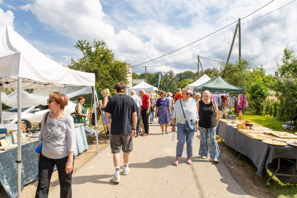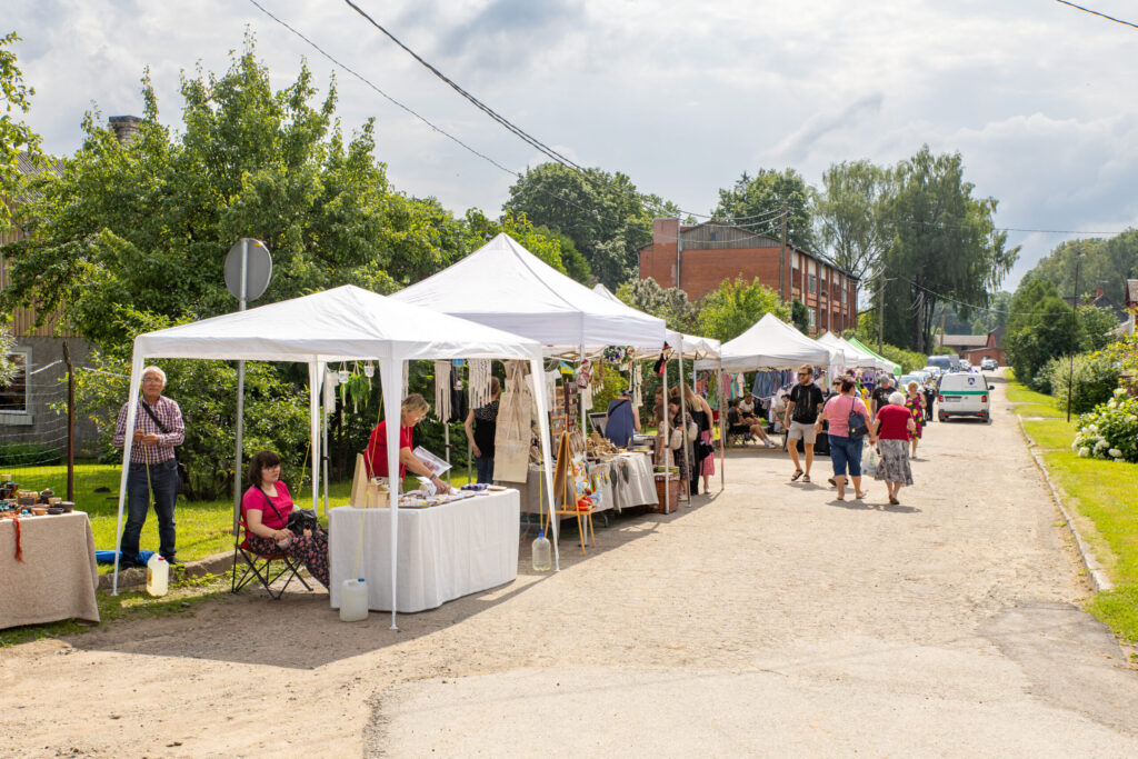 Mājražotāji, amatnieki, ēdinātāji un citi tirgotāji bija iekārtojušies Vecumnieku centrā pretim parkam, kur no gājēju pārejas pie Vecumnieku vidusskolas Rīgas ielā līdz pat Sporta ielai pat vēlā pēcpusdienā valdīja burzma un kņada. Kad svētku apmeklētāji posās vakara koncertam estrādē, arī tirgotāju rindas kļuva retākas. Kādā nojumē «Bauskas Dzīve» vēl sastapa zīmola «Piena aitas» produkcijas pārdevēju Intu, kura tirgoja brunavietes Ilutas Straģes saimniecībā gatavoto saldējumu, jogurtu, dažādu veidu sierus. «Cilvēku bija ļoti daudz, taču šoreiz mums «iegrieza» ķibele ar frīzeru – no ierindas izgāja saldējuma ražošanas iekārta, bet šis gardums ir ļoti ejoša prece. Labi, ka piedāvājumā bija arī cita veida saldējums un labumi. Šie ir svētki, kur ļaudis nākuši atpūsties, viņi negrib nesāt līdzi pudeles un maisiņus; paņem siera gabaliņu, nopērk saldējumu un bauda,» vērtē pārdevēja. Neizpirktos svēpētās keramikas traukus un koka izstrādājumus mājās vešanai pakoja amatnieki no Kurmenes – Valda un Andris Baroniņi. Viņi atzina, ka diena bija izdevusies un salijušie lina galdauti jau teju izžuvuši. «Sākumā nodarbojos ar kokapstrādi, darināju sviesta nazīšus, karotes un citus priekšmetus, bet, aizejot pensijā, pievērsos mālošanai; meita Inese ievilka,» par savu aizraušanos smaidot stāsta kurmenietis un atklāj, ka gandrīz katru nedēļas nogali kaut kur dodas, lai realizētu saražoto.