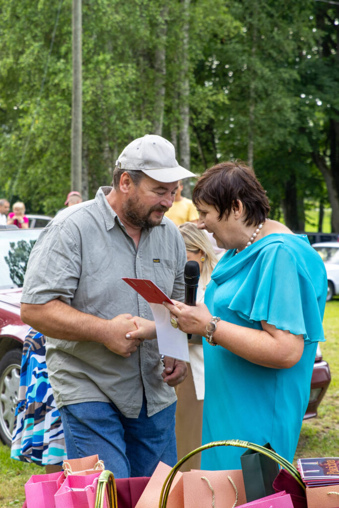 Gaidīts mirklis bija floristu konkursa rezultātu paziņošana. Žūrijā kopā ar Līgu Lauriņu dalībnieku veikumu vērtēja Kristiana Gertsone un Andra Rušmane. Pateicību par profesionālu un radošu darbu saņēma komandas: «Ezīši», «M2», «A4», «Bizbizmārīte», «Improvizācija», «Ģimene». 3. vietu ieguva «Hiacintes» (Ingūna Skrīvele, Ilona Čerņišovska), kas pārstāvēja Limbažu novadu. 2. vieta piešķirta «Damaskas rozei» (Ineta Kanna, Stelpe; Kristīne Kanna, Vecumnieki), bet 1. vieta komandai «Draudzenes» (Solvita Kozlovska, Salacgrīva; Gundega Kruglova, Baldone). S. Kozlovska, kura kādreiz bija vietējā un citus gadus konkursā pārstāvēja Vecumniekus, pateicās atbalstītājiem un pauda prieku par skaisto satikšanos dzimtajā pagastā. «Šogad bija fantastiskas kolēģes un komandas, kas ar mums kopā startēja, un es katrai dotu godalgu,» viņa uzsvēra. Savukārt skatītāju balvu ieguva «Vālodzes» (Agnese Krūmiņa, Mārīte Ērgle-Sorokina, Vecumnieki). Prieku par panākumiem neslēpa komandas pārstāve A. Krūmiņa: «Neesam profesionālas floristes, bet mums patīk puķes un radoši darboties. Konkursā piedalījāmies pirmoreiz, līdz šim bijām tikai skatītājas un balsojām par citu radītajām kompozīcijām.»