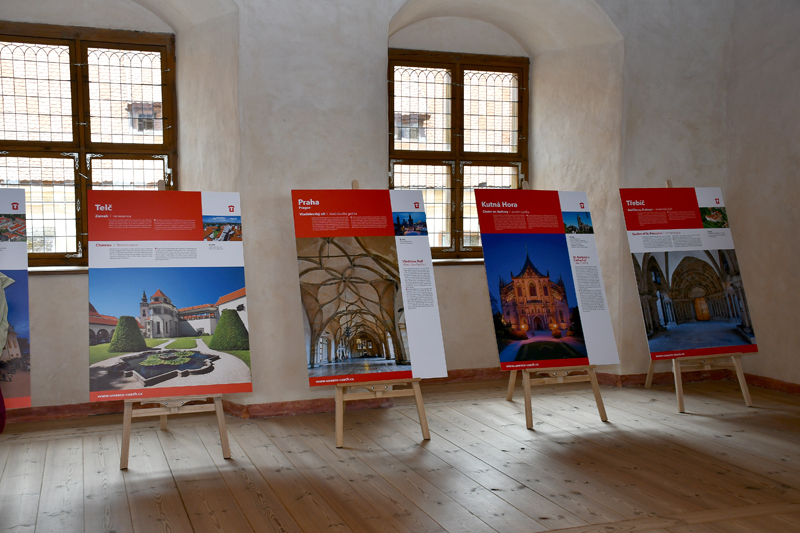 Bauskas pils muzeja pārstāve Elīna Jegorova pastāstīja, ka izstādē eksponētas planšetes ar fotoattēliem un īsu informāciju par 12 UNESCO mantojuma pieminekļiem, piemēram, romānikas stila sv. Prokopija baznīcu Trhebīčā, gotikas stila pērli – Vladislava zāli Prāgas pilī, sv. Barbaras katedrāli Kutna Horā, Telčas un Litomišlas renesanses pilīm, Kromerižas baroka pili ar dārza ansambli un vienu no pazīstamākajām historisma stila pilīm Čehijā – Lednici.