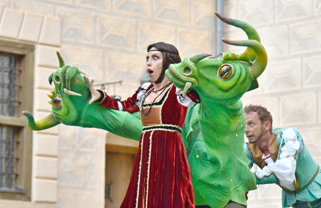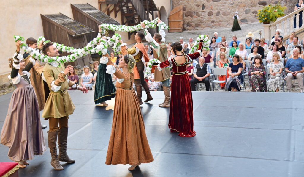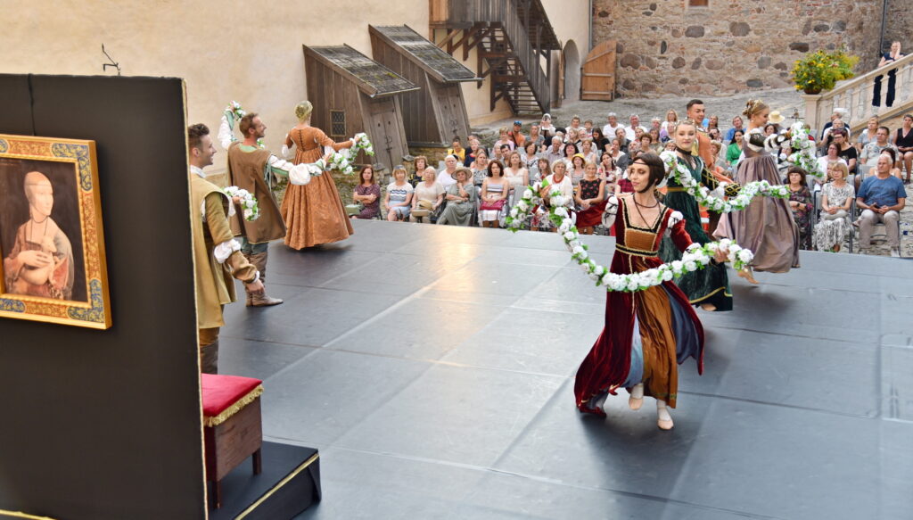 Pils svētkus jaunās pils pagalmā noslēdza krāšņs deju uzvedums «Veiksme. Dāma ar sermuliņu», ko izrādīja izcilais vēsturisko deju balets «Cracovia Danza» no Polijas.