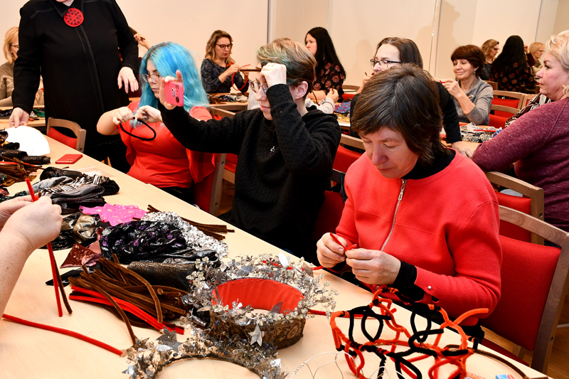 Kroņu darināšanas darbnīcā un izstādes atklāšanā bija klāt arī vietējā iedzīvotāja Santa Poriņa. Viņai patīk rokdarbi, taču sev kroni vēl nebija veidojusi. «Pēc profesijas esmu grāmatvede, un mani pievelk viss radošais. Mājās daudz ķimerējos, gatavoju kartītes draudzenēm. Kad sākās karš Ukrainā, es saliku vairākas dimantu mozaīkas gleznas, lai tikai nav par to jādomā. Aizraujoties ar kaut ko, uzmanība tiek novērsta no nelāgām domām,» teic S. Poriņa un piebilst, ka pēc darbnīcas mājās savu kroni pārtaisījusi, jo bijis par maz laika, kas atvēlēts galvasrotas pagatavošanai.
