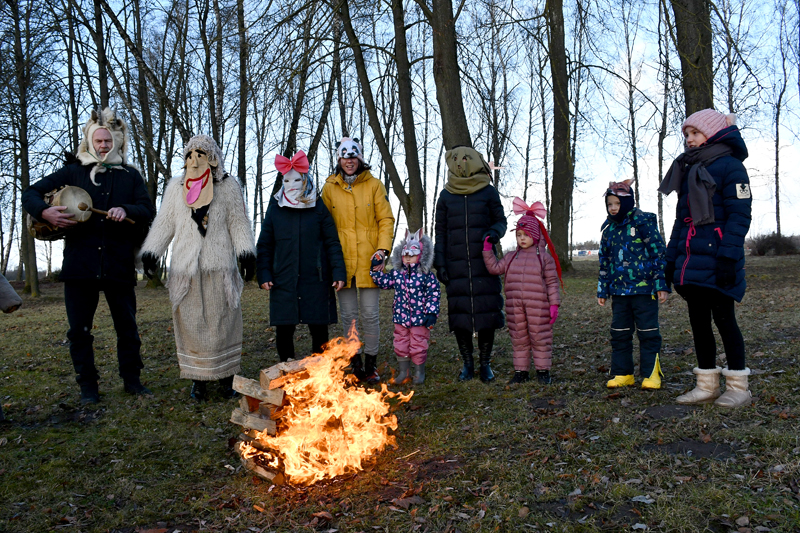 Pēc atribūtikas izgatavošanas pasākuma dalībnieki tika aicināti doties ārā tautas nama pagalmā, lai ar folkloras kopu «Laukam pāri» piedalītos dažādās Meteņdienai raksturīgās aktivitātēs. Pirms izkustēšanās tika kurts ugunskurs, bet tā liesmas slāpēja spēcīgās vēja brāzmas, tālab pasākuma dalībnieki kopā ar folkloras kopu satupās ap uguni, lai izveidotu aizvēju, un izdziedāja nodarbei atbilstošu tautasdziesmu. Visiem sastājoties aplī un dziesmas ritmā sitot kājas, notika «kurmju dzīšana», lai tie vasarā netraucētu ražas augšanai. Tā kā sniegs vēl šajā dienā nebija no jauna uzsnidzis, laišanās ar ragaviņām šogad izpalika, bet citām rotaļām sniega trūkums netraucēja.