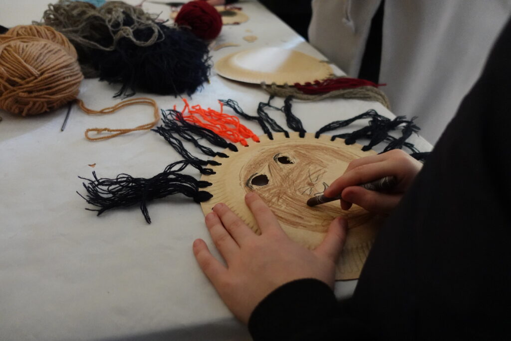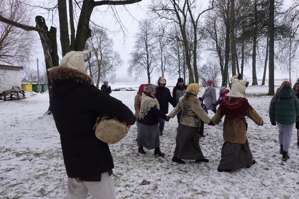 «Izgatavojam maskas, lai gan pieaugušie, gan bērni iejūtas Meteņu dienas svinību pasākumā, pēcāk sekos citas aktivitātes,» stāsta pasākuma organizatore Jurgita Červinska, «nezinu, kā ir bijis pirms tam un vai Meteņu diena šeit tika atzīmēta iepriekšējos gadus. Drīzāk ir bijuši bluķa vakari un citu saulgriežu atzīmēšanas pasākumi, bet Meteņu dienu es pati šogad pirmo reizi organizēju.»