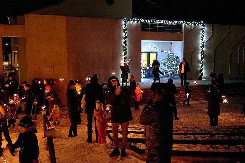 Pēc izrādes visi devās laukā, kur tika iedegta eglīte un sanākušos priecēja uguns šovs.