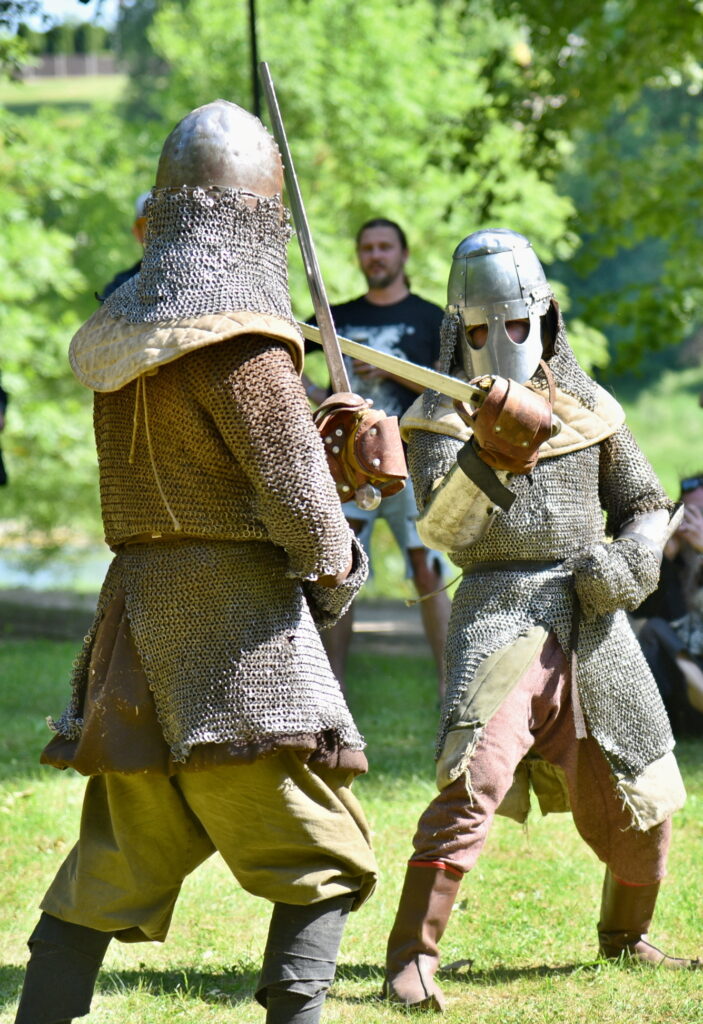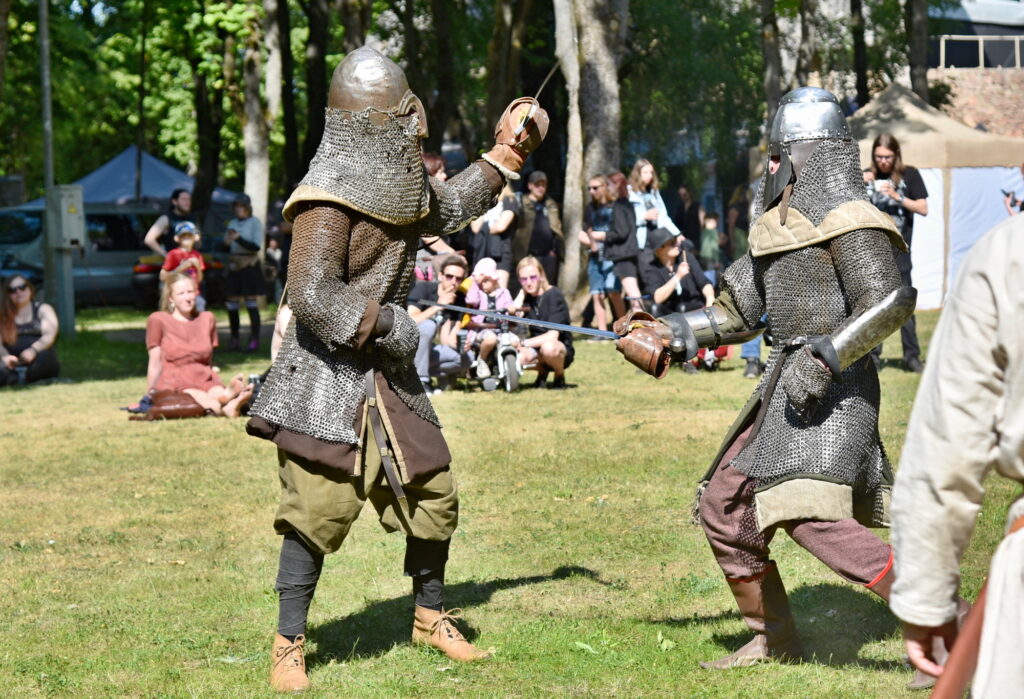 Pēcpusdienā sekoja viduslaiku cīņas, kurās metās viesi no dažādiem vēstures rekonstrukcijas klubiem – nokārušies ar gredzenu bruņukrekliem, aizsegušies ar ķiverēm un vairogiem, vīri vicināja zobenus, vāles, cirvjus, šķēpus, un cīņas ritēja ilgāk, nekā plānotā pusstunda – ik pa brīdim iekarsuši pārīši nāca noskaidrot attiecības. Turpinājumā bija senās spēka spēles, kuras gan šoreiz pārsteidza organizatorus – ierasto apmēram desmit vīru vietā bija vairāk nekā 30 dažāda vecuma un dzimuma dalībnieku, kuriem nācās pielāgoties pašiem organizatoriem.