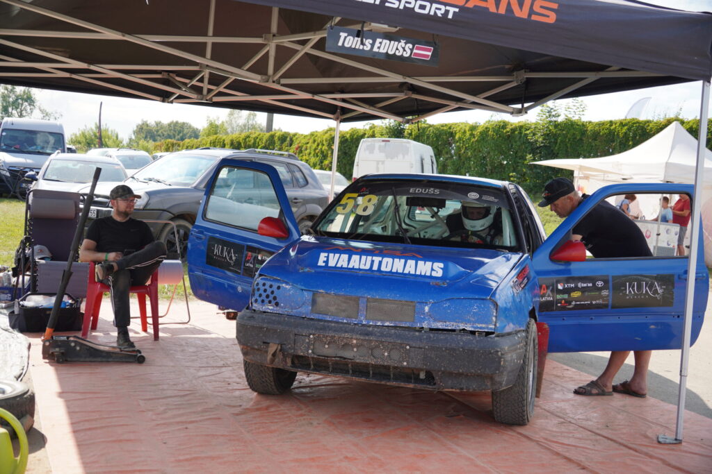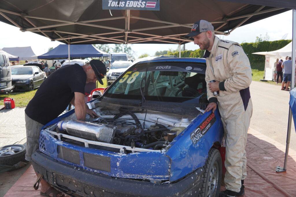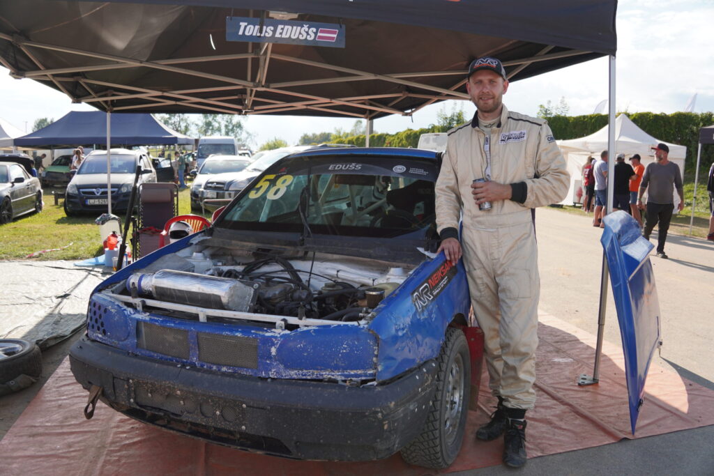«Līdz šim ne pārāk labi veicas. Šīs ir manas pirmās sacensības šogad – biju paņēmis nelielu pauzi, lai uzlabotu sacensību automašīnas jaudu. Tikai trešdien to piedarbinājām, tad devāmies uz motora regulāciju un piektdien paspēju izbraukt tikai vienu treniņapli, kad mašīnai atkal parādījās kārtējais defekts,» par gatavošanos sacensībām stāsta baušķenieks Toms Edušs, «sestdien nobraucām oficiālos treniņus – sapratām, ka mašīnas jauda ir lielāka, un ātrumkārba nevar «pavilkt» tās jaudu, tāpēc nācās uzmeklēt un nomainīt ātrumkārbu pret jaunu. Šodien pirmo reizi braucu ar jauno ātrumkārbu, tāpēc joprojām ļoti «taustos» un mēģinu to izjust – pagaidām no četrām kvalifikācijām tikai viena ir nobraukta, jo ātrums ir, pats labi jūtos, bet tehnika «netur līdzi» automašīnas jaudai.»