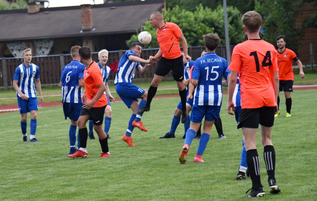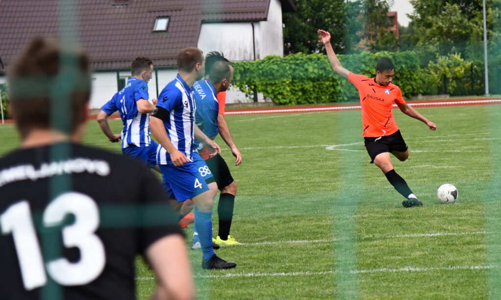 Baušķenieki gan nemeta plinti krūmos un jau turpinājumā sagrieza riktīgu virpuli pie viesu vārtiem, bet bumba spītīgi nelīda iekšā. Pat ja sanāca līdz pat trīs sitieniem uz vārtu pusi vienā uzbrukumā. Iecavnieki cēlās un krita, bet bumba vārtos netika.