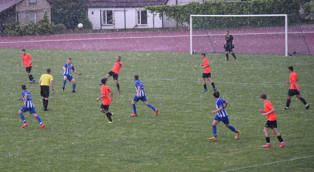 Otro puslaiku gan pozitīvāk sagaidīja baušķenieki – varēja just, ka sākumā Iecavas spēlētāji bija vairāk spēka izlikuši un uz to uzsvēra arī «Bauskas BJSS/Mēmele» treneris Arturs Kupčiuns – jāspiež uz tempu, jo baušķeniekiem spēka vairāk. Spiediens uz vārtiem turpinājās, bumba vārtos negāja. Tad iecavniekiem palīgā atnāca lietus gāzes, kas samazināja spēles tempu un atvēsināja spēlētājus. Tiesa, ne rakstura ziņā – 70. minūtē dzelteno kartīti baušķeniekiem dabūja Svajunas Fokas, bet iecavniekiem sarkano – A. Jasutis.
