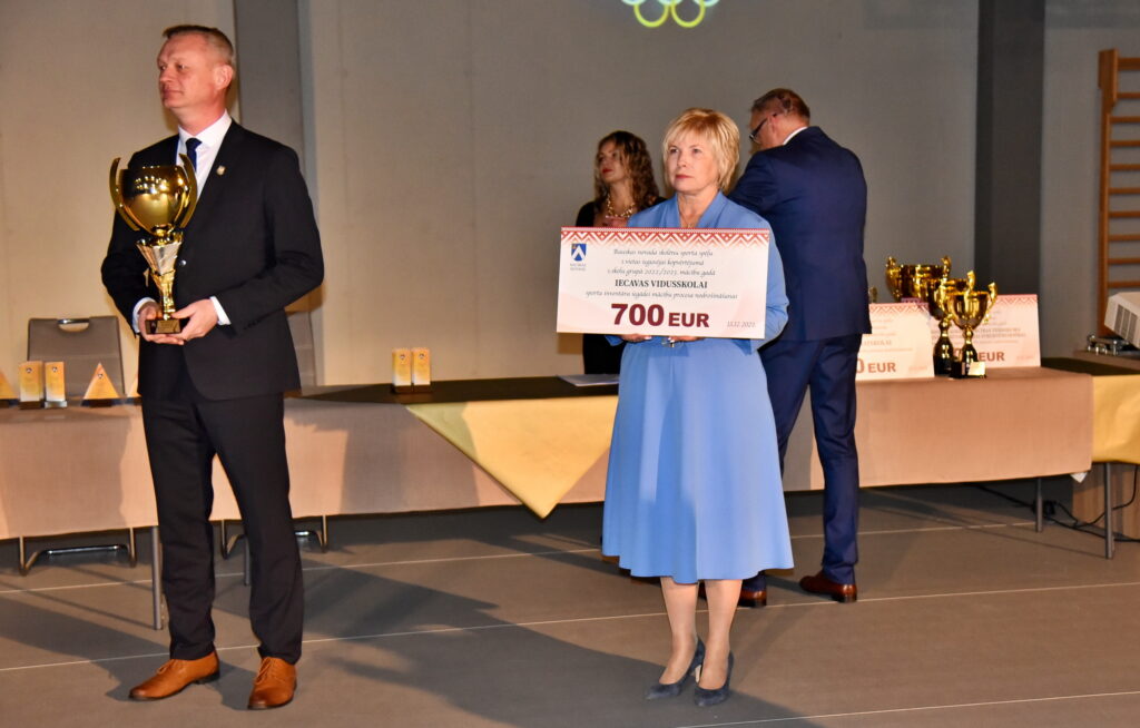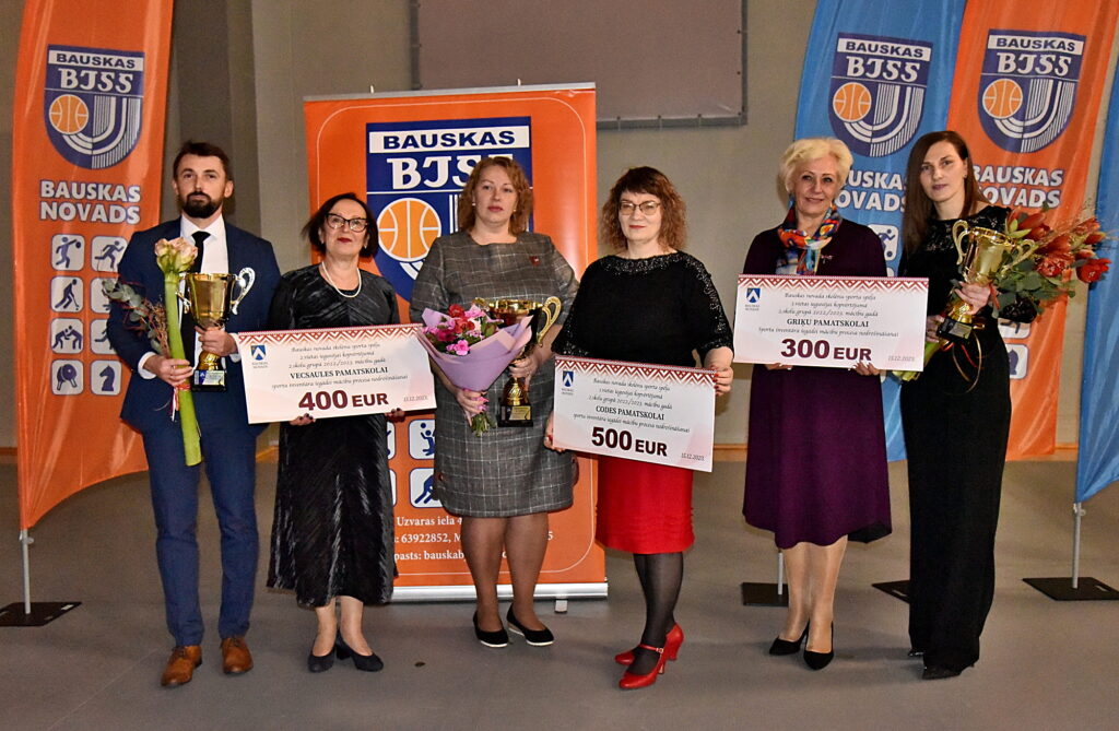 Paziņoja arī novada skolēnu spartakiādes kopvērtējuma laureātes – izglītības iestādes. Katra no mācību iestādēm saņēma naudas balvu sporta inventāra iegādei. Pirmajā skolu grupā trešajā vietā Bauskas 2. vidusskola, otrajā vietā Bauskas Valsts ģimnāzija, un uzvarētājas godā šoreiz Iecavas vidusskola. Otrajā skolu grupā trešajā vietā Griķu pamatskola, otrajā vietā Vecsaules pamatskola, un uzvarētāju godā Codes pamatskola. Trešajā skolu grupā uzvara šoreiz Valles pamatskolai. Vidusskolu grupā trešajā vietā šogad Kandavas lauksaimniecības tehnikuma Saulaines teritoriālā struktūrvienība, otrajā vietā Iecavas vidusskola, un labākā 2023. gadā bija Bauskas 2. vidusskola.