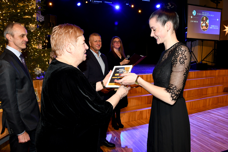 starp jaunietēm balvu saņēma Adriana Krūzmane. Aizvadītajā gadā Latvijas vieglatlētikas izlases sastāvā U20 vecuma grupā Pasaules čempionātā viņai bija viens no labākajiem rezultātiem Latvijas izlasē – 11. vieta trīssoļlēkšanā. Savukārt jauniešu balvu pasniedza Larsam Anderam Luikam, kurš tikko U16 vecuma grupā uzstādīja Latvijas rekordu 800 metru skrējienā telpās un izcīnīja godalgas orientēšanās sacensībās.