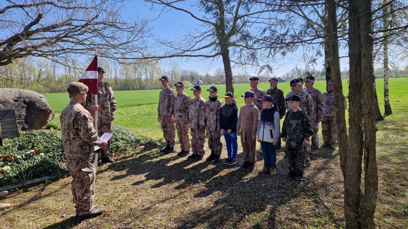 FOTO: Jaunsargi dod svinīgo solījumu pie ģenerāļa Krišjāņa Berķa pieminekļa Īslīces pagastā