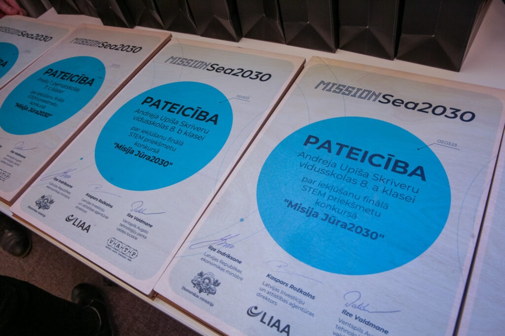 Šodien, 2. martā, zinātnes centrā “Vizium” Ventspilī, tika godināti skolēnu konkursa “Misija Jūra 2030” uzvarētāji. Labākos pētījumus video formātā par tēmu, kā iegūt tīru ūdeni mūsu apkārtnē, bija sagatavojuši Bauskas 2. vidusskolas 7. b klase, skolotāja Daiga Eglīte, A. Upīša Skrīveru vidusskolas 8. a un 8 b klase, skolotājas Danute Podvinska un Daiga Martinsone, Preiļu 1. pamatskolas 7. c klase, skolotāja Ieva Babre un Jelgavas Pārlielupes pamatskolas 9. b klase, skolotāja Irina Timofejeva, portālu informēja Latvijas Investīciju un attīstības aģentūru (LIAA) komunikācijas un informācijas departamentā.