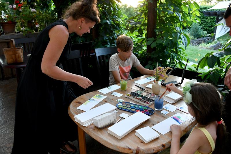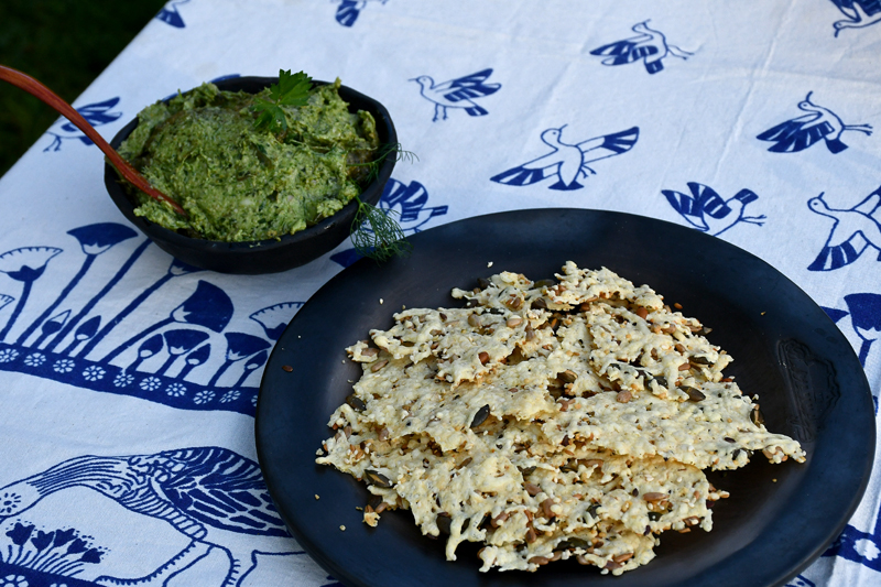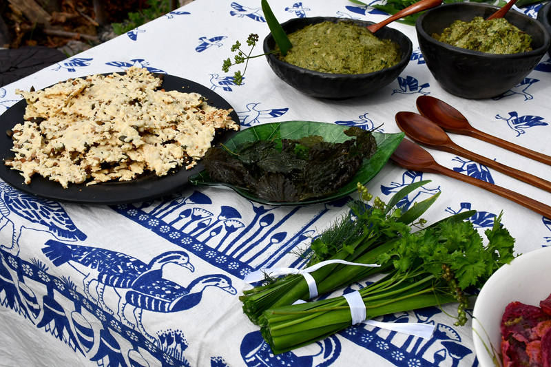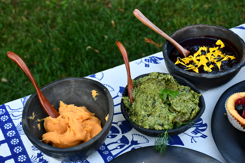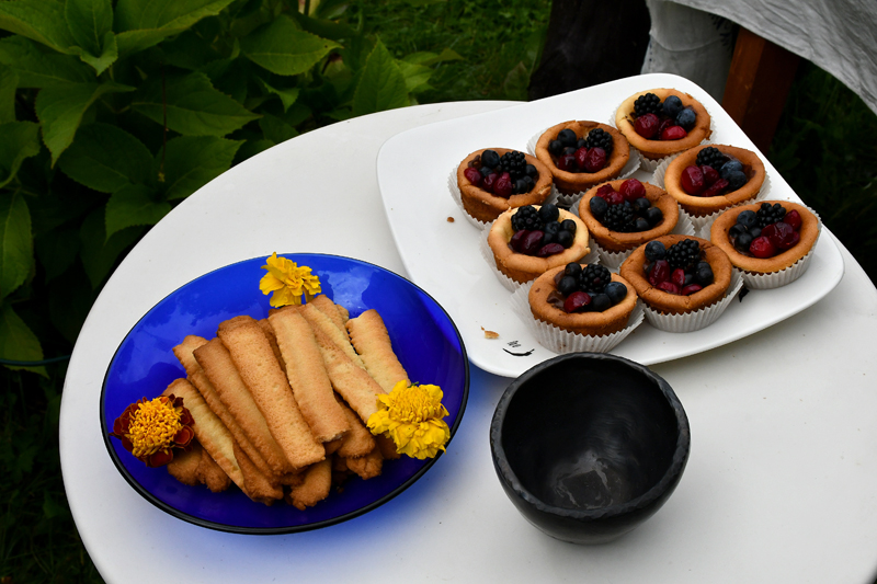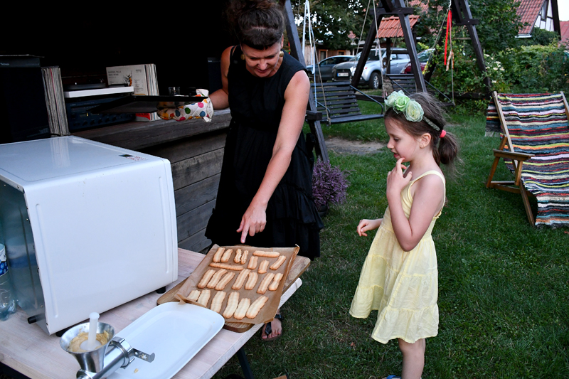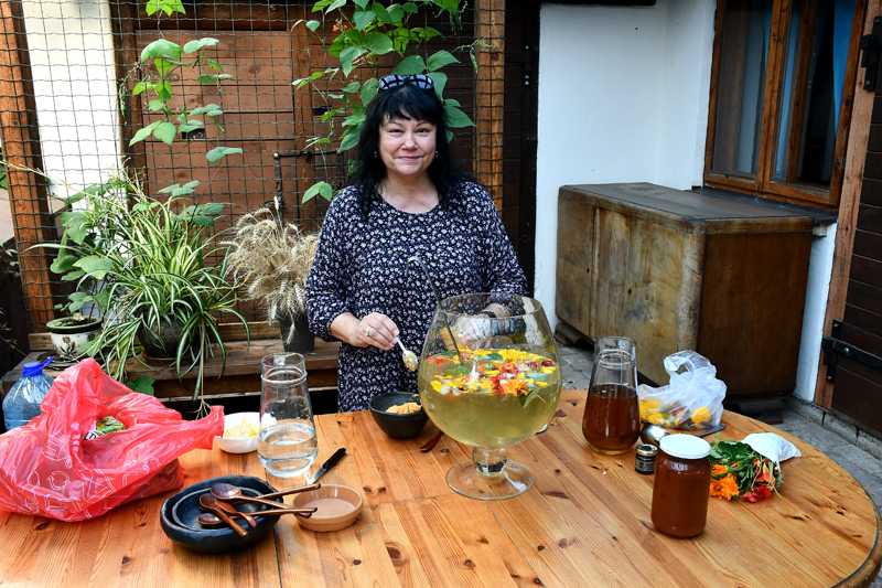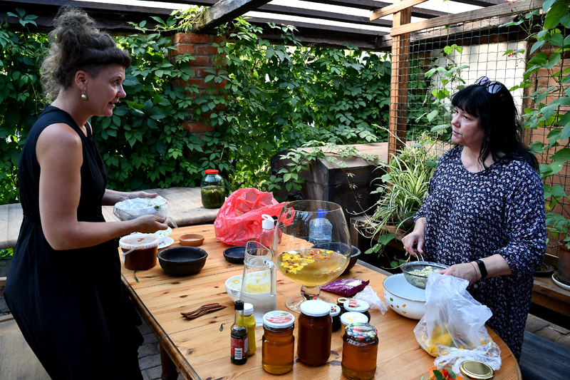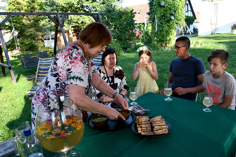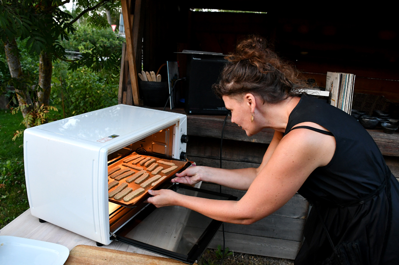 Piedāvājam fotomirkļus no mājas kafejnīcas viesu mītnē «Baltā māja» Rundāles pagasta Pilsrundālē, kur saimnieko Solveiga Ikerte, piepalīdzot meitai Laurai Matildei un mazbērniem. Ar aizrautību savam vaļaspriekam – ēdienu gatavošanai – bija nodevusies rundāliete Lilita Lauskiniece, galda klājumam piedāvājot smēriņus gan no skābenēm un koriandra, gan plūmes ar čili, aprikozes ar riekstiem, kas labi saderējās ar pankūciņām, kas iejauktas ar burkānu sulu. Bija arī pankūkas ar nātru sulas piedevu un varēja uzkost pat fritētas kraukšķīgas nātru lapiņas.