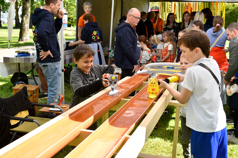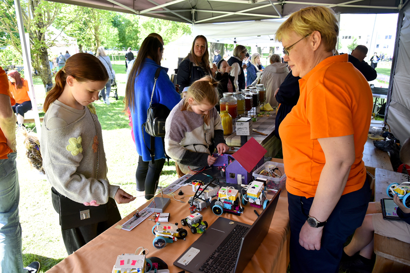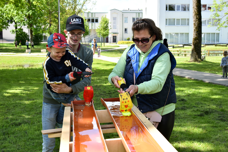 Interesi piesaistīja Bērnu un jauniešu centra robotu trase, iespēja izmēģināt keramikas virpu. Azartu raisīja arī centra Garšu laboratorijas piedāvājums – nogaršot piecas dažādas sulas un noteikt, no kā tās ir spiestas. Ar tomātu un ābolu sulu veicās labi, jau sarežģītāk bija sagaršot upeņu un aveņu sulu, vēl grūtāk klājās ar rabarberu sulu.