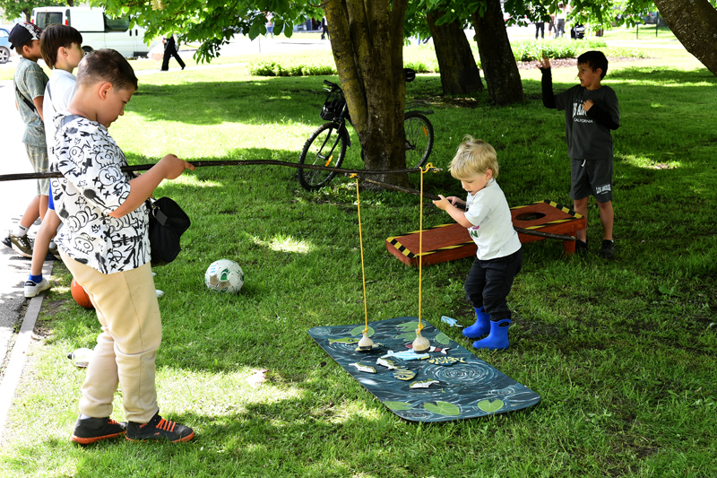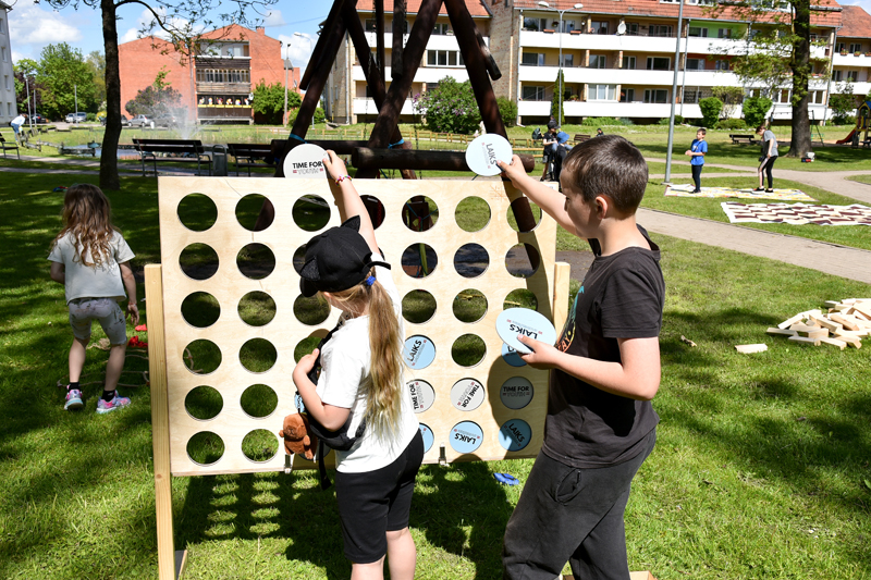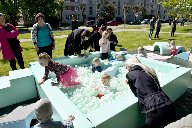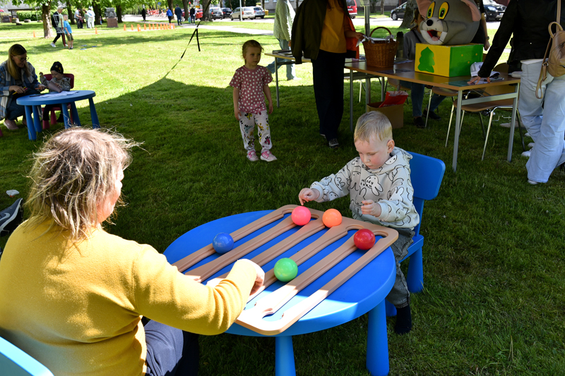 Daudz bērniņu darbojās piepūšamajās atrakcijās, iemēģināja roku disku golfa metienos, kūlās pa baseiniem, kas pildīti ar bumbām, spēlēja dažādas spēles.