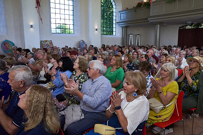 Mežotnes baznīcas apkārtnē pati daba arī radījusi smaržu pārbagātību – te zied liepas; apmeklētāji pēc koncerta vēl fotografējās un nesteidzīgi baudīja vasaras vakara kaislības.