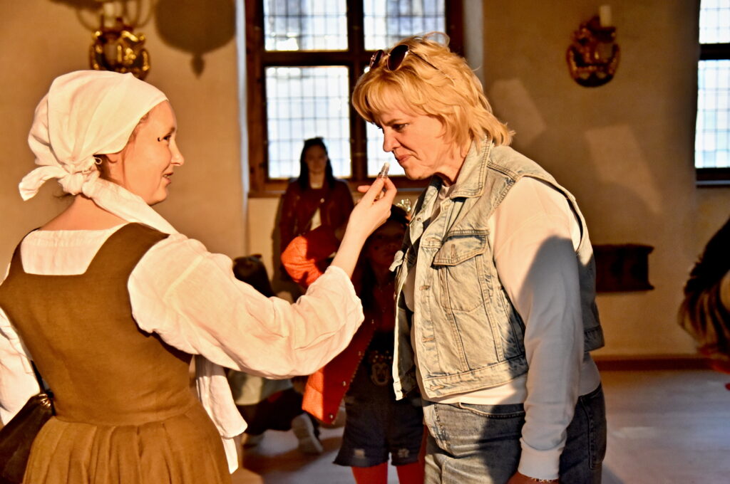 Pasākuma pirmajā daļā vislielākā uzmanība bija divām aktivitātēm. Bauskas pils muzeja pedagoģe Ilona Ozola iepazīstināja interesentus ar 16. gadsimta skaistuma kopšanas paņēmieniem. Stāstīja par maģiskajiem eliksīriem un dziedinošām ziedēm, kā arī iepazīstināja ar dažādiem skaistumkopšanas rituāliem un paņēmieniem, kā tajā laikā mēģināja pievērst pretējā dzimuma uzmanību.
