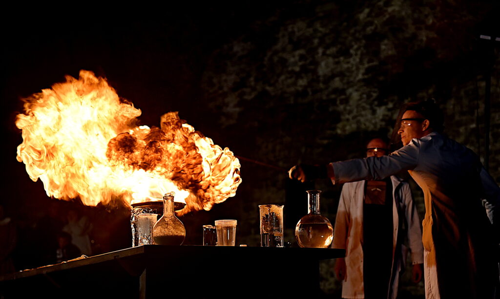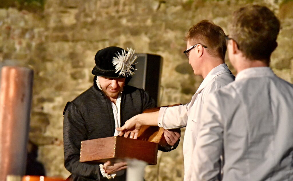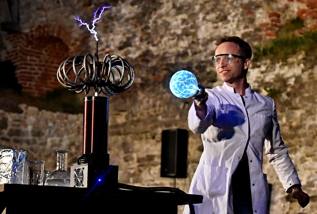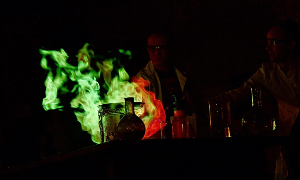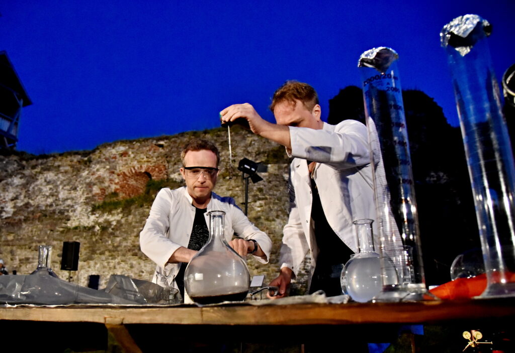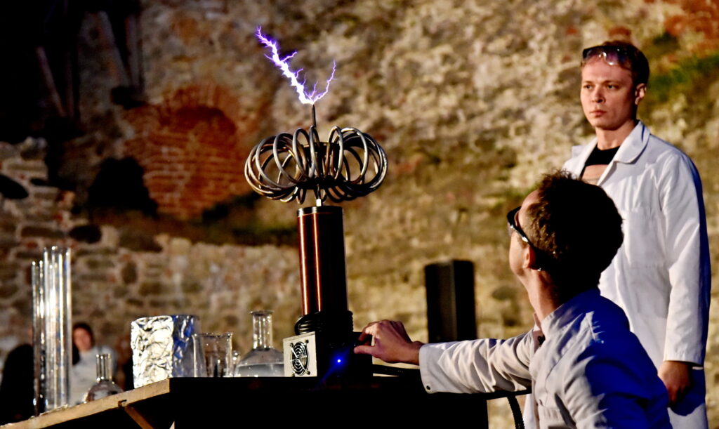 Jau gandrīz nakts tumsā visi interesenti pulcējās Livonijas ordeņpils pagalmā, kur ķīmiķi no «Laboratorium.lv» bija piekrituši hercoga izaicinājumam un centās radīt filozofu akmeni – vielu, kas parastos metālus pārvērš zeltā vai sudrabā un spēj dot cilvēkam nemirstību vai mūžīgo jaunību.