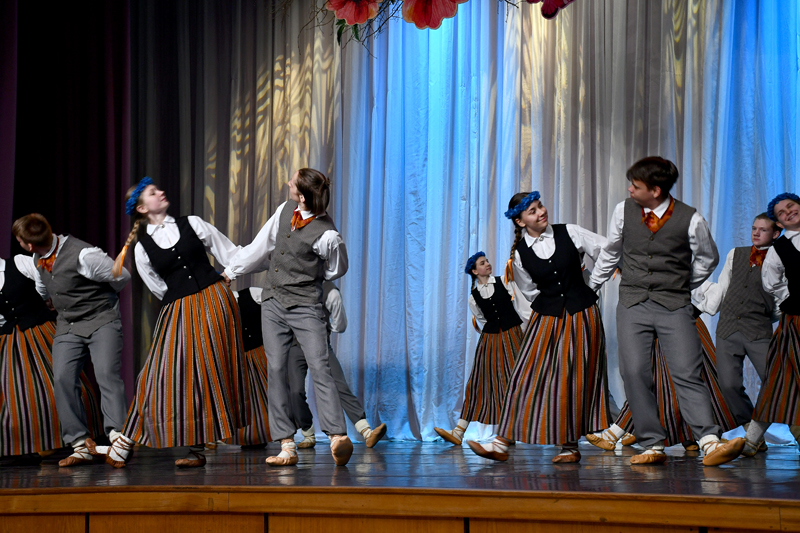 Savu sniegumu demonstrēja 32 kolektīvi, «puse no tiem, kas pieteicās septembrī», radošajā koncertā 1. – 12. klašu tautas deju kolektīvi dejo divas dejas – vienu obligāto, otru – pašu izraudzīto, stāsta L. Irbīte. Deju kolektīvu sniegums tiek izteikts šādos vērtējumos:  repertuārs apgūts; repertuārs apgūts daļēji; repertuārs nav apgūts. «Galvenais pašlaik ir uzkāpt uz skatuves,» uzsver L. Irbīte, «nelielas nianses, kā krekli biksēs vai vestīšu garums, ir izlabojamas. Lielai daļai skolēnu šī pēc krietna laika ir pirmā uzkāpšana uz skatuves, tāpēc visi ir malači, kas dejo.»