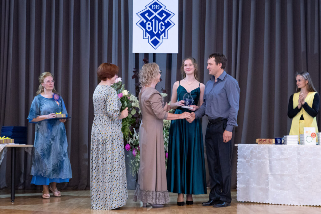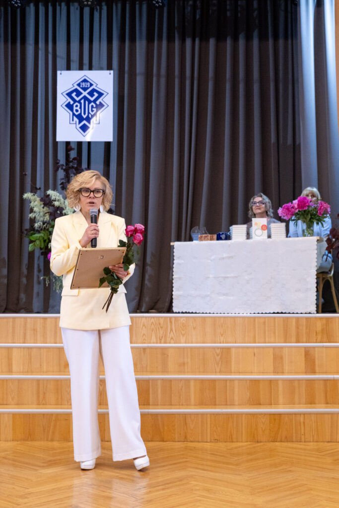 BVĢ direktore L. Ģerģe absolventiem velta vārdus: «Lepojos! Nekas jau nebeidzas. Viens pakāpiens noslēdzas un gaida nākamais. Sapņojiet! Noticiet! Sasniedziet!»