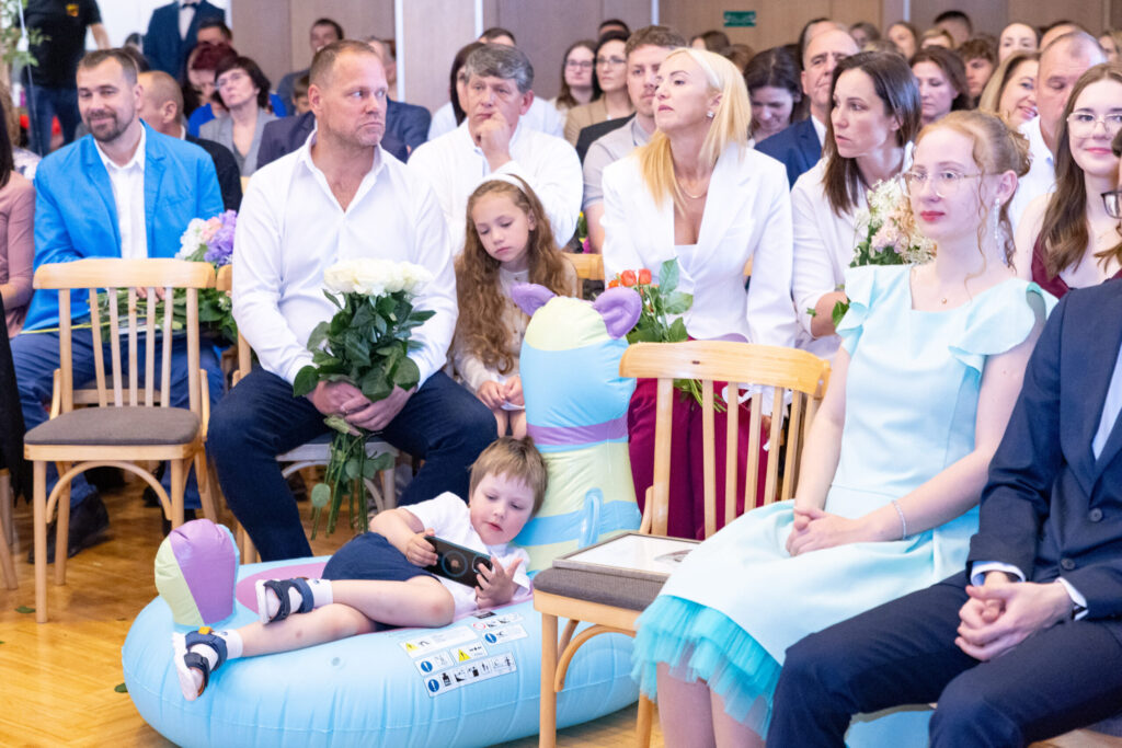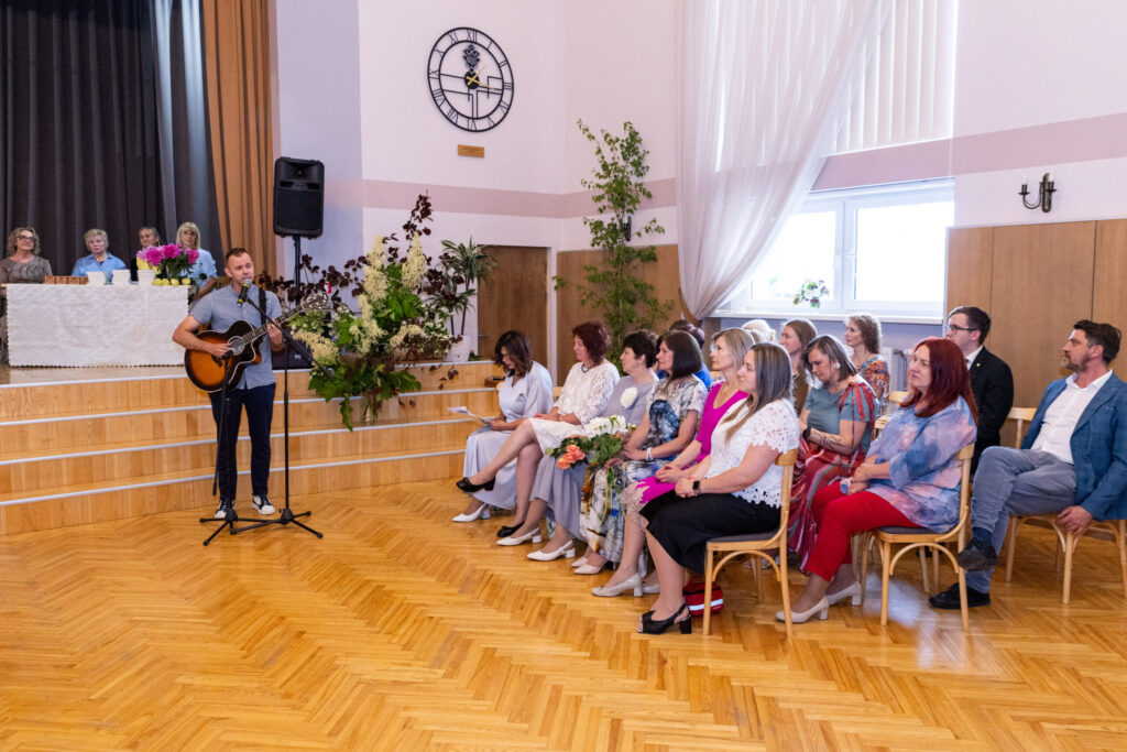 Jauniešiem, viņu pedagogiem, vecākiem svinīgajos brīžos ceturtdien muzikālus sveicienus sūtīja mūziķis Pēteris Upelnieks.