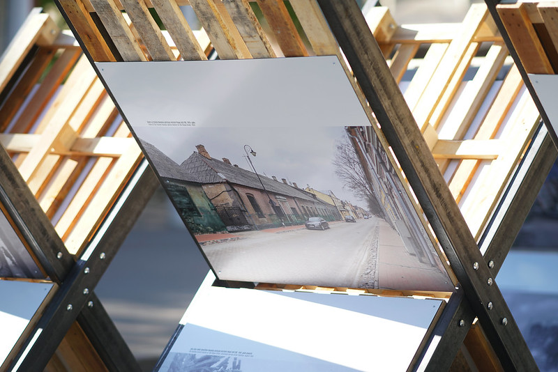 Brīvdabas izstādē vizuāli saistošā veidā izstāstīts 1944.gada aprīlī-oktobrī padomju aviācijas uzlidojumos un Vācijas-PSRS karadarbībā visvairāk cietušo Latvijas pilsētu – Rēzeknes, Gulbenes, Jelgavas, Bauskas, Valmieras un Rīgas nopostīšanas stāsts, parādot, kā pilsētu arhitektūra un to veidols kara rezultātā nereti mainījies teju līdz nepazīšanai.