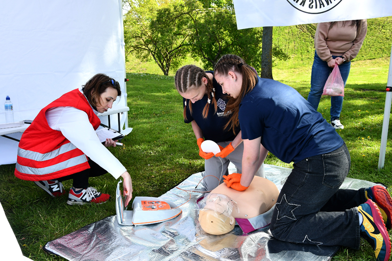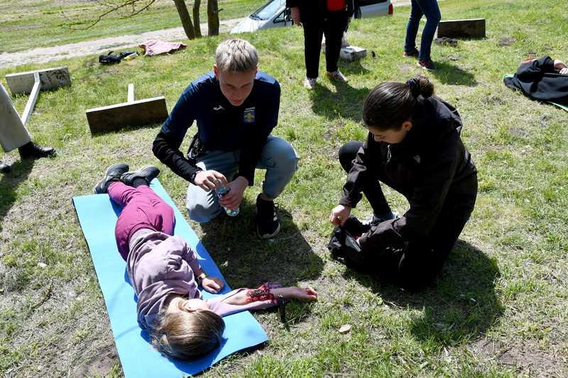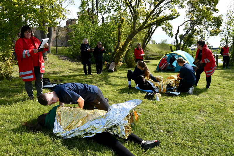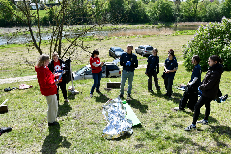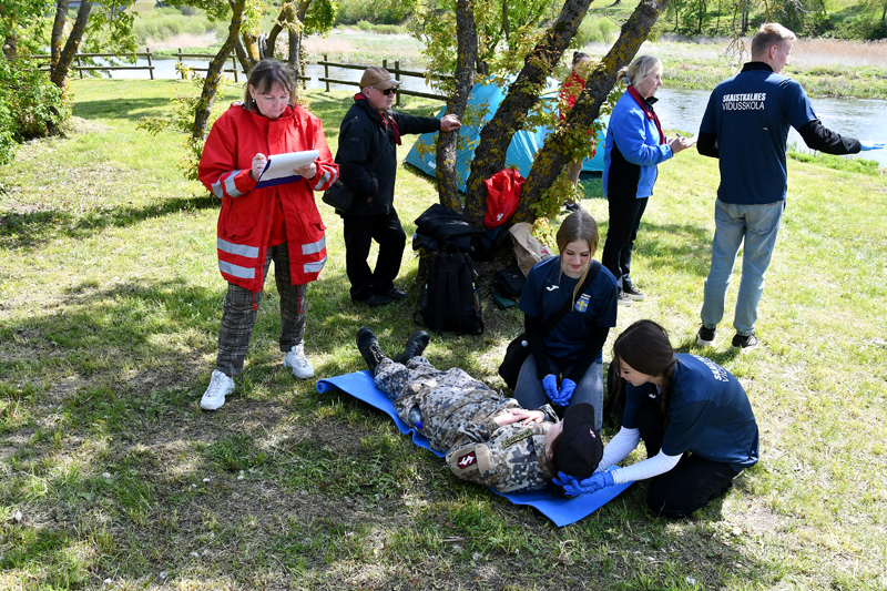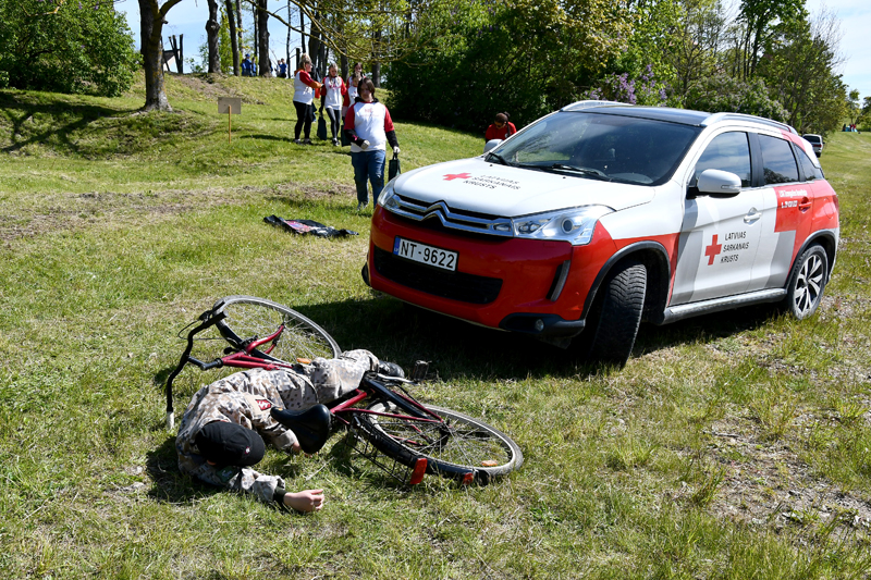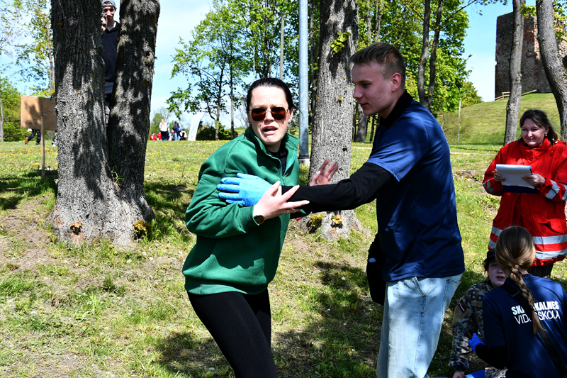 Bauskas pilskalna parkā otrdien, 13. maijā, Zemgales reģiona skolēni piedalījās biedrības «Latvijas Sarkanais krusts» Zemgales komitejas rīkotajās pirmās palīdzības sniegšanas sacensībās.