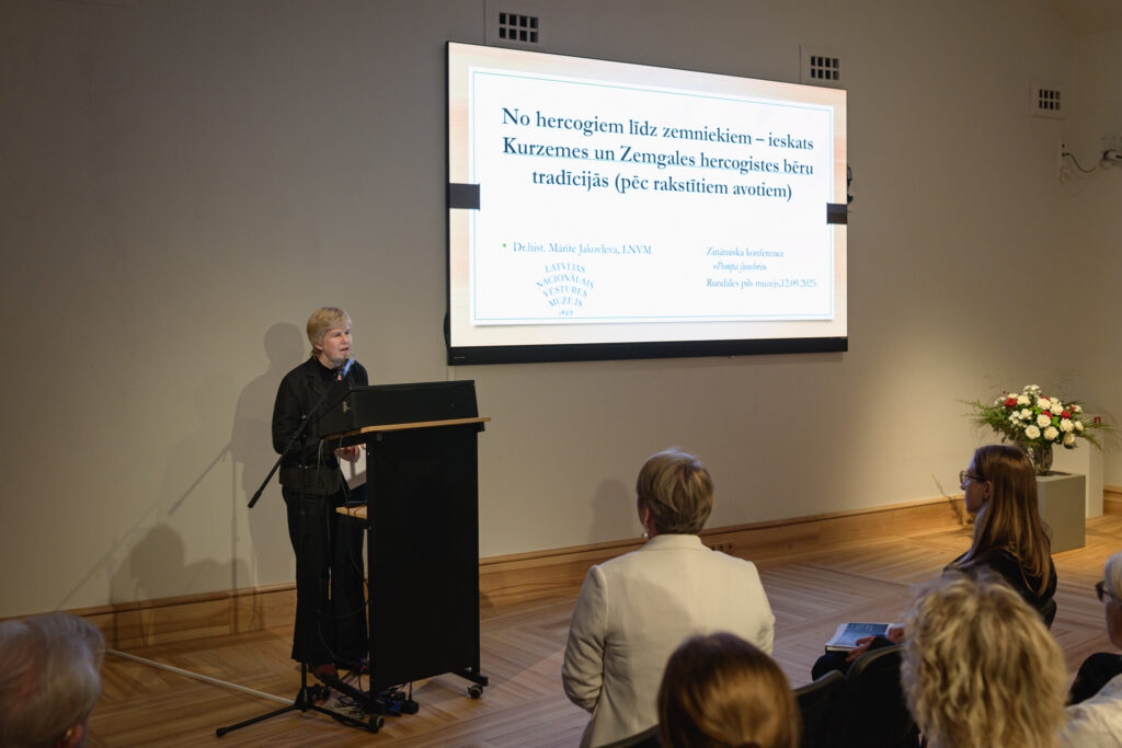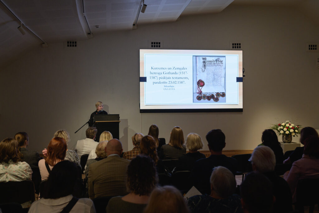 I.Kusiņa sniedz pārskatu par lasījumu un ziņojumu tematisko saturu, vēstot, ka konferenci atklāja Rundāles pils muzeja direktore Dr. art. Laura Lūse ar priekšlasījumu par Kurzemes hercogu kapenēm Jelgavas pilī un sarkofāgu restaurāciju, kas muzeja uzraudzībā norit jau vairākus gadu desmitus. Priekšlasījumā tika uzsvērta Kurzemes hercogu kapeņu nozīme Eiropas piemiņas kultūras kontekstā. 2025. gadā noslēgsies Ketleru dinastijas sarkofāgu restaurācija, kas veikta ar Kurzemes bruņniecības Apvienoto Kurzemes fondu finansiālu atbalstu.