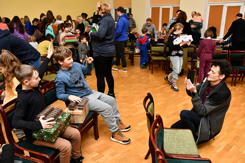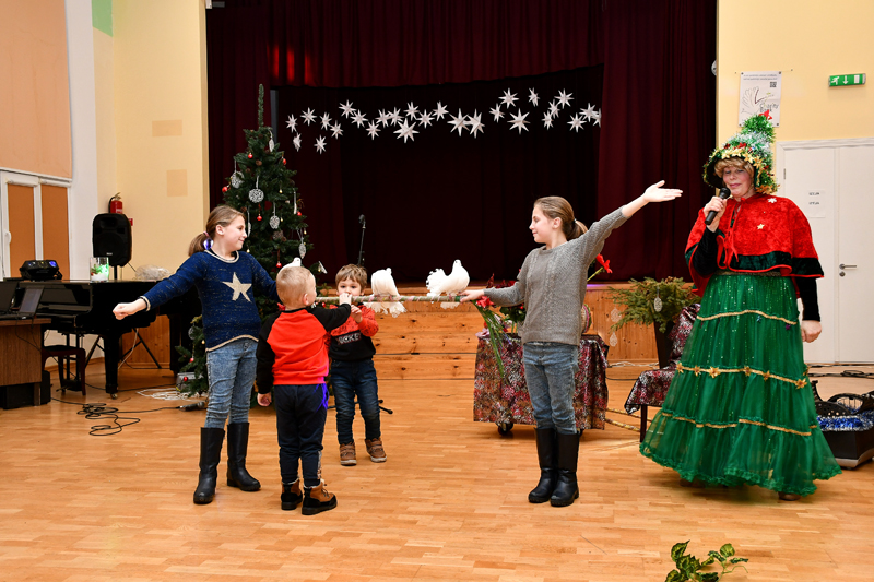 Lai izdotos labs pasākums bērniem, vajag ko tādu, lai viņi paši var aktīvi iesaistīties un reizē ir kaut kas pārsteidzošs. Tas viss arī bija – bērnus izklaidēja burvju māksliniece Ligita Būmane ar šī vakara vispopulārāko sunīti Maksi un baložiem Romeo, Džuljetu un Snovfleiku (Sniegpārsliņu), kā arī žonglētājs un klauns Georgijs Borro juniors.