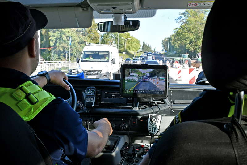 Policisti maiņu sākuši pulksten 7 rītā, un līdz pulksten 10 pārkāpumi nav fiksēti. Dienesta automobilis ir aprīkots ar vairākām kamerām un datoru, kas fiksē pretī braucošo mašīnu ātrumu, kā arī sniedz informāciju par transportlīdzekļa tehnisko apskati un apdrošināšanas polisi. Transportlīdzekļa salonā ir galdiņš, kur ērti sarakstīt nepieciešamos dokumentus.