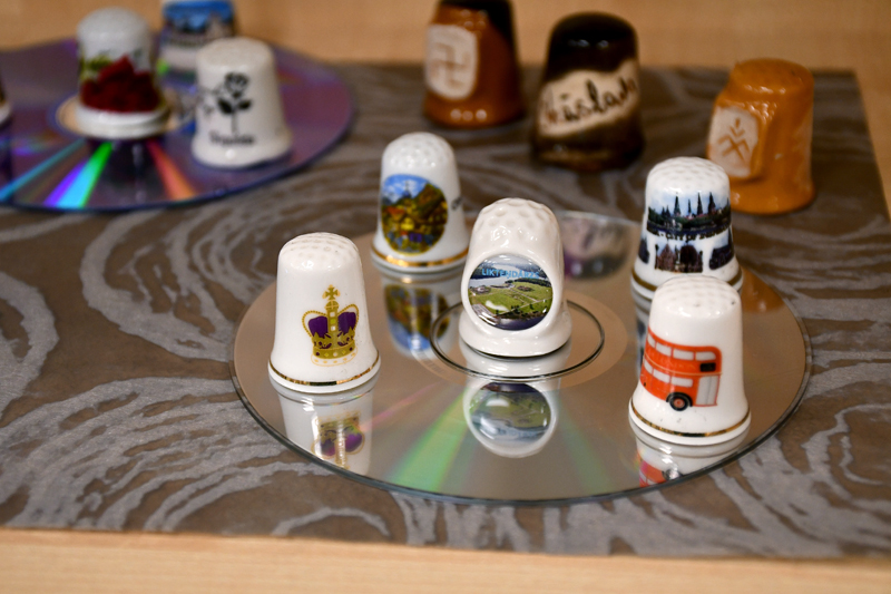 Nejaušs bijis arī Pilsrundāles vidusskolas datorikas skolotājas un bibliotekāres Intas Počas uzpirksteņu kolekcijas sākums. Minhauzena muzejā ieraudzīts un iegādāts pirmais eksemplārs, jo ļoti iepatikās. Turpmāk uzpirksteņi atceļo gandrīz no katra tālāka brauciena, ja vien izdodas tos atrast, jo ne visur piedāvā šādus suvenīrus. Izstādē aplūkojams 31 uzpirkstenis.
