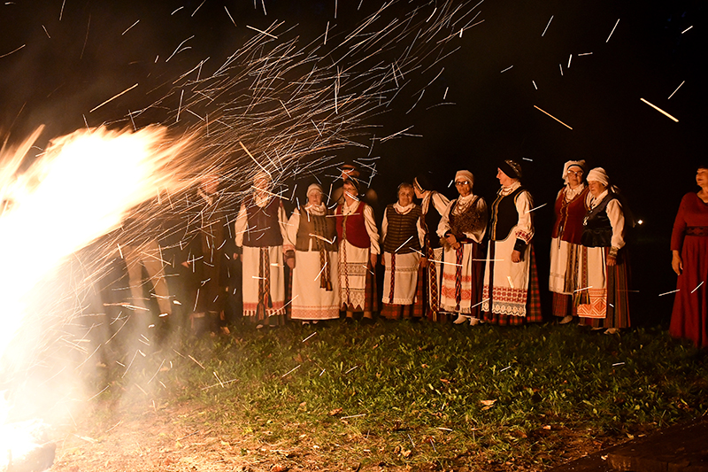 Ar jestrāku muzicēšanu pievienojās Jelgavas valstspilsētas folkloras kopa «Dimzēns», vadītāja Velta Leja. Visbeidzot visus vienoja kopīga «Pūt, vējiņi!» dziedāšana un patriotiskā dziesma «Lietuva». Kad ugunskurs jau sāka izdzist, Mežotnes pilskalnā ieradās apvienības «Soul of Flames» (no angļu valodas ‘liesmu dvēsele’) jaunieši, kuri, šķita, ka izprot uguns dvēseli, un tiešām dzirksteļo. Kā šo šovu nosaukt – žonglēšana ar uguni vai uguns savaldītāju dejas? Skatītāji aplaudēja un sauca «bravo!». Klātesošie apbrīnoja to meistarību un enerģiju, kas virmoja no māksliniekiem.