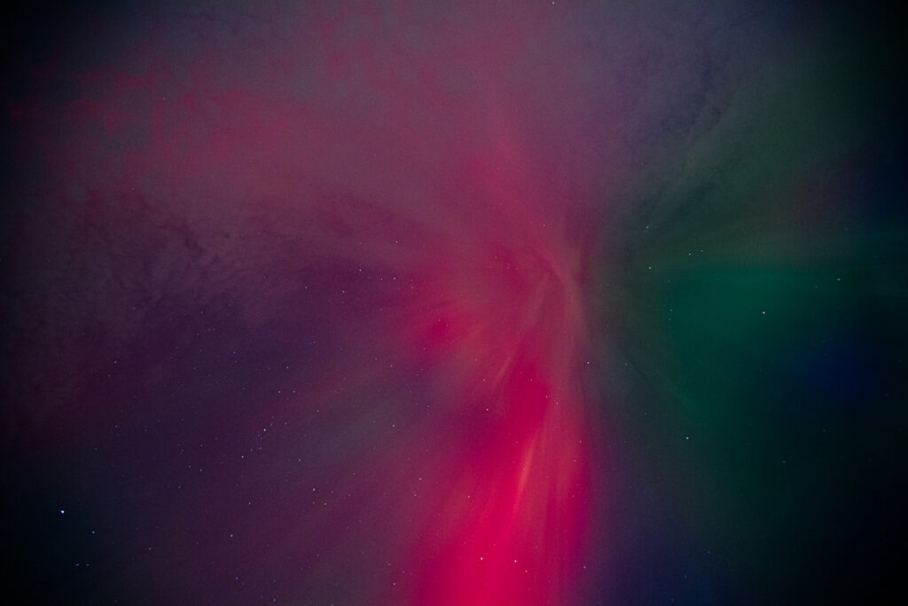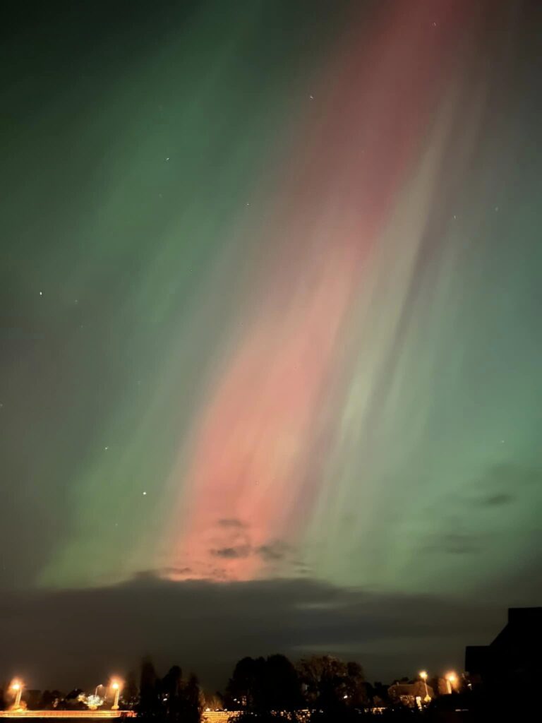 “Skaistums! Pirmajā vilnī ap pulksten 20 tik spoža, ka ar neapbruņotu aci varēja redzēt gan zaļo, gan sarkano krāsu. Pēc tam pulsējoša pa visām debesīm. Ap 20:30 arī SAR (Stable aurora red arc). Ap to pašu laiku arī tieši virs galvas spilgti zaļš fragments. Īsumā – fantastika!” sociālajā vietnē “X” vakar vēstīja laika ziņu moderators Martins Bergšteins.