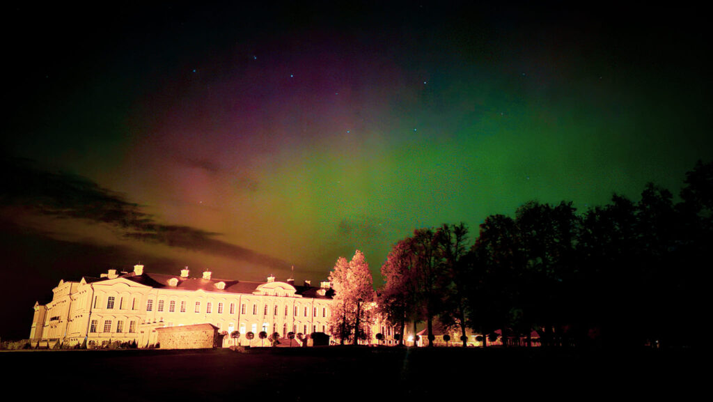 Foto: Elena Čabaņenko ziemeļblāzmu piefiksējusi Rundāles pils apkārtnē.