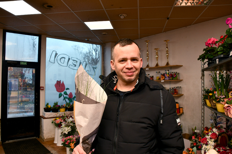 Mareks bija iegriezies “Ziedu bāzē”, lai sievai iegādātos dzeltenas gerberas: “Es izvēlos sievai dāvināt to, kas tiešām patīk. Gerberas ir viņas mīļākie ziedi,” norāda vīrietis, papildinot, ka Valentīndienu atzīmēs, baudot svētku vakariņas.