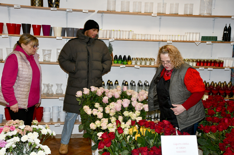 Visu mīlētāju dienā Bauskas ziedu tirgotājiem darba netrūkst. Puķu tirgotavas durvis vērušas jau agrā rīta stundā. Piektdienas, 14. februāra, priekšpusdienā “Bauskas Dzīve” devās izlūkot, kā sokas vietējiem floristiem un kādus ziedus izvēlas gādāt pircēji.