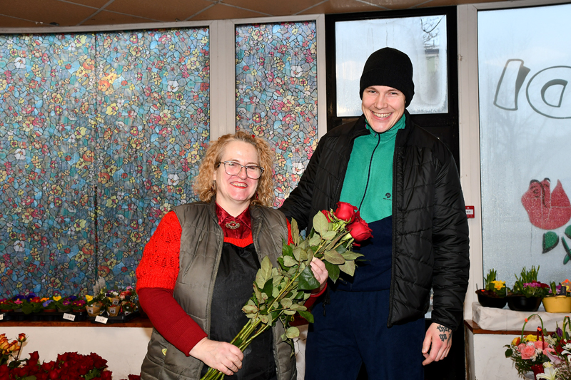 Aivars sievai Valentīndienā izvēlējās no veikala “Rozīte” sortimenta piecas sarkanas rozes. Floriste Daina Kaspardena atklāja, ka Aivars ir pastāvīgs ziedu veikala klients, un viņš vienmēr izvēlas tieši sarkanas rozes. “Man ir prieks, ka Aivars dāvā sievai ziedus ne tikai Valentīndienā un 8. martā, bet arī ikdienā,” teic floriste Daina, stāstot, ka veikalā Aivaru sastop salīdzinoši bieži.