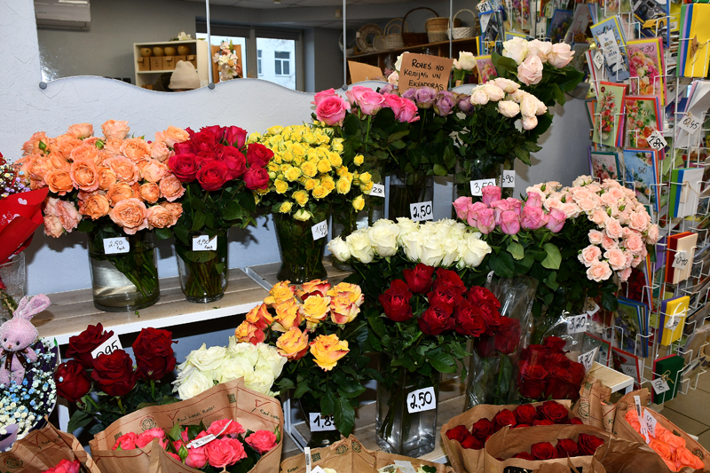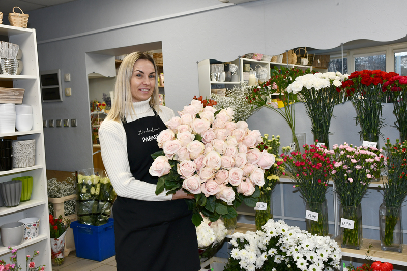 Ziedu bodītē «Aijas ziedi» Parka ielā mūs sagaida īpašniece Dace Lazdiņa. Viņa šogad sava veikala sortimentam lielākoties sagādājusi rozes, lai klienti var izvēlēties sev tīkamo krāsu, garumu un kuplumu. Arī par tulpītēm padomāts – jau vairāk kā 15 gadus “Aijas ziedi” piedāvā iespēju iegādāties tulpes, kas audzētas tepat Latvijā. Ziedu klāstu papildina arī olīvkoks un eksotiskāki augi.