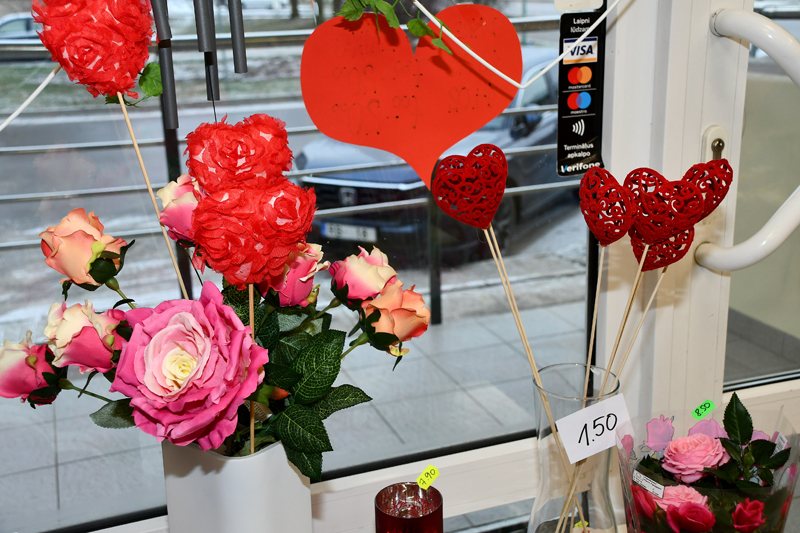“Bauskas Dzīve” Valentīndienā devās arī uz veikalu “Rozīte”. Te Valentīndienas atmosfēra sagaidīja jau ārpus telpām – nama fasāde rotāta ar sarkanām sirdīm un dažādām lentītēm, vilinot apmeklētājus iegriezties tirgotavā. “Rozīte” piedāvā ne tikai ziedus, pildot plauktus ar tulpēm, rozēm un vēl citiem krāšņiem ziediem, bet arī dažādus sirsniņdienas dekorus un dāvanu kastīšu kompozīcijas, kas pildītas ar konfektēm.