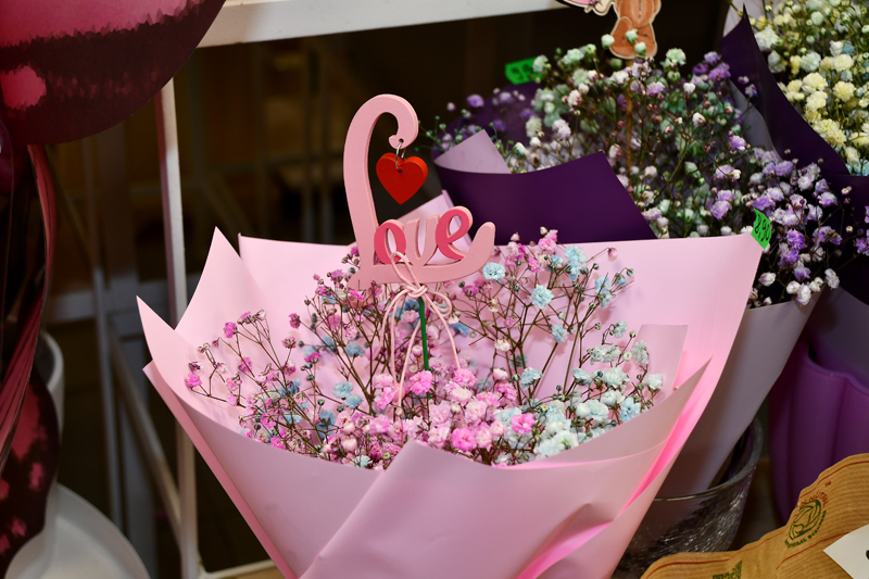Floriste Tatjana pavēsta, ka šogad daudzi pircēji uz vietas pērk krāsaino ģipseņu pušķīšus, taču iepriekš tika pasūtīti arī vairāku krāsu rožu pušķi. Ziedu pasūtījumus mēdz veikt vīrieši arī no ārzemēm, tad gan visvairāk izvēloties sarkanās rozes. Nereti pircēji lūdz piestiprināt pie apsveikuma kartītes arī novēlējumu, vai dekorēt ziedus ar sirdīm, citkārt ar lācīšiem. Arī skolēni šodien neaizmirsa par apsveikumiem, tāpēc piektdienas rītā izteikti daudz iegādājušies mazos hiacinšu podiņus.