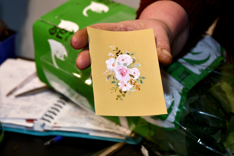 “Katru dienu mēs saliekam kopā ko jaunu, ievietojam “Facebook”. Pušķu cena ir nemainīga – 20 eiro, toties ik dienu mēs piedāvājam kaut ko citu. Vakar tas bija violetos toņos, šodien, protams, izmantojām sarkanās rozes.” “Dienas pušķi”, lai sveiktu savu mīļoto sievu, izvēlējās pirkt arī Pēteris.