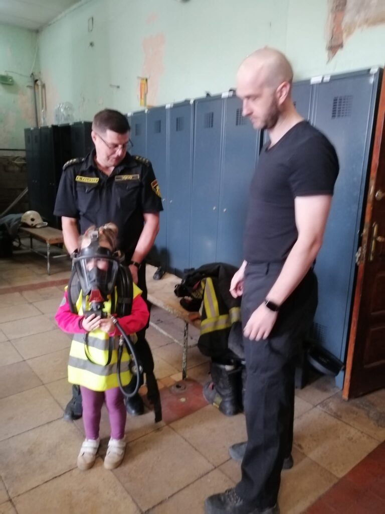 Bērni apskata autocisternu, kurā varot satilpt desmit tonnas ūdens, savukārt autokāpnes varot pacelties līdz deviņstāvu mājas augstumam. Apskatīja elpošanas aparātu, tā balonu vairāki kā mugursomu lika mazajos plecos. Piecus gadus vecā Karmena «Bauskas Dzīvei» atklāja, ka zina, kur atrodas, – «tas ir ugunsdzēsēju depo». Meitene stāstīja, ka «ugunsdzēsēji dzēš uguni un palīdz suņiem un kaķiem nokāpt no koka, viņiem ir speciāli tērpi, lai būtu droši no uguns».