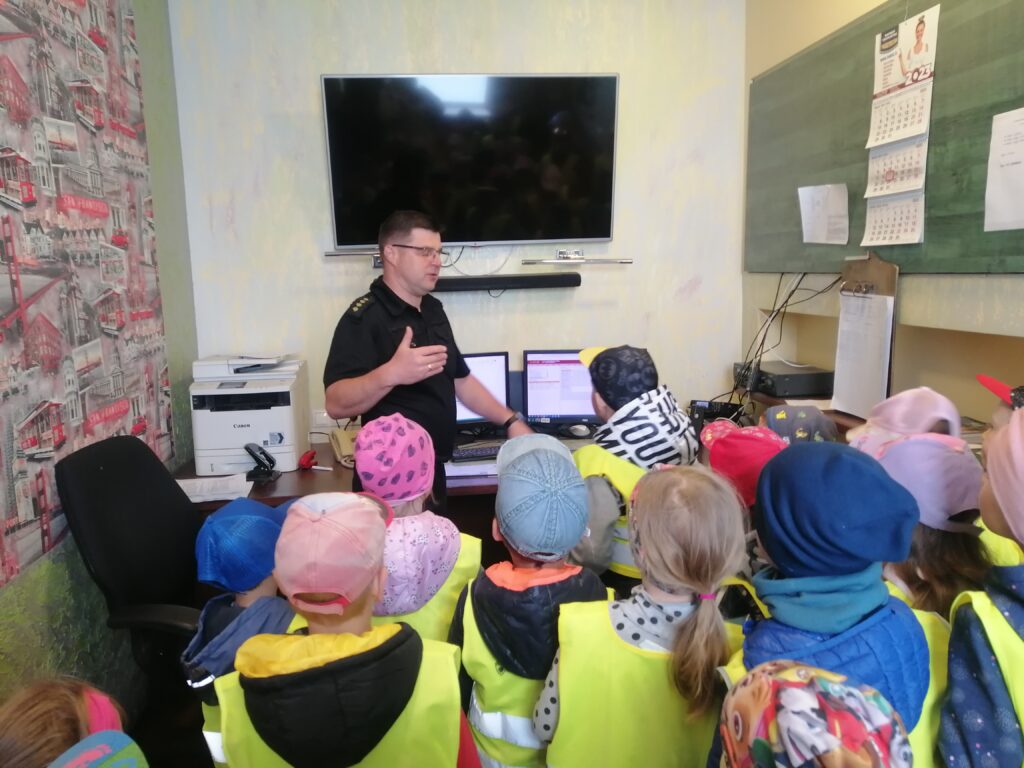 Vispirms visi iegriežas dispečeru telpā. Vada komandieris Aleksandrs Falučko jautā, kā var sazvanīt ugunsdzēsējus glābējus. Bērni nekļūdīgi zina nosaukt «112», viņiem ir arī skaidrs, kāda informācija būtu nosaucama, lai laikus saņemtu ugunsdzēsēju glābēju palīdzību. Arī citu operatīvo dienestu numurus mazie zēni un meitenes itin veikli prot nosaukt. Daži audzēkņi rūpīgi ieskatās datora monitorā un jautā: «Kas tas?» Viņi izzina pat elektronisko sistēmu, kurā darbojas ugunsdzēsēji glābēji.