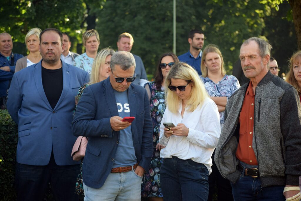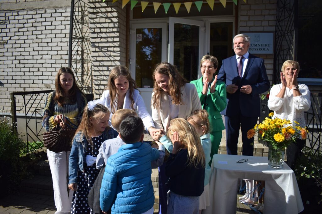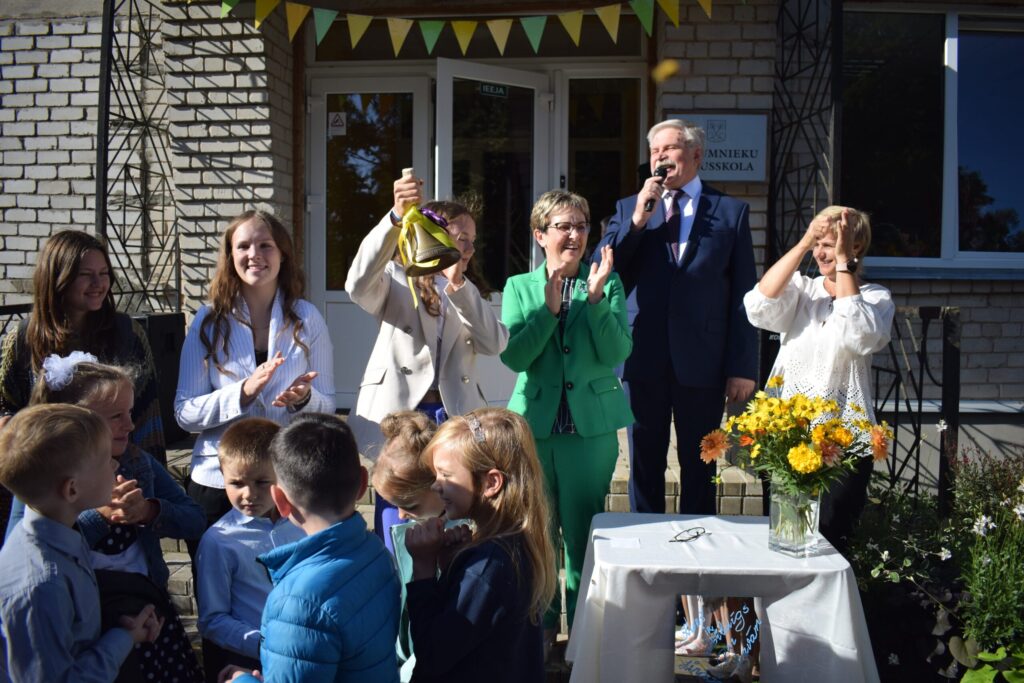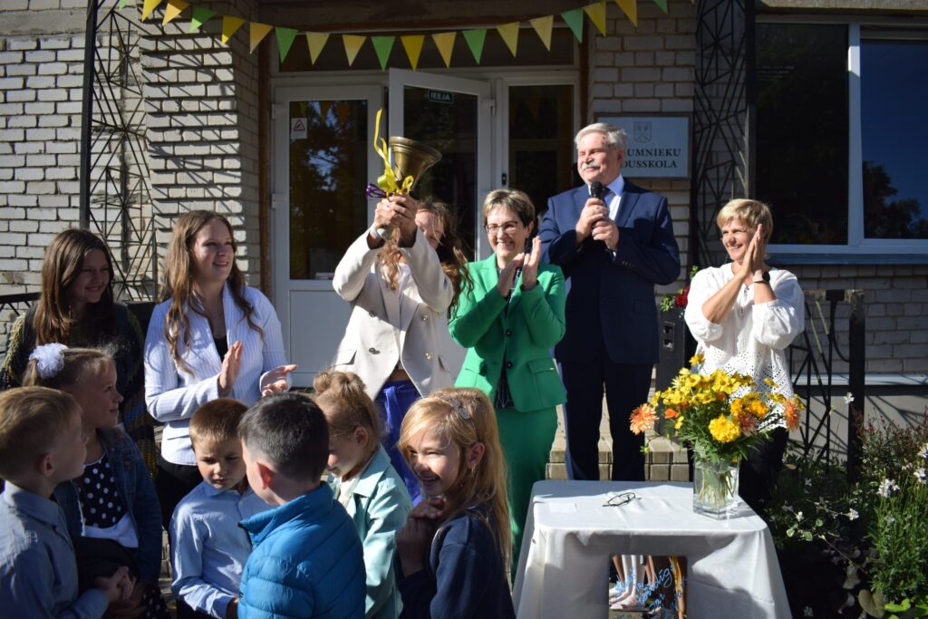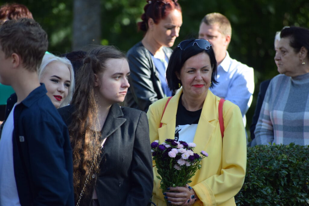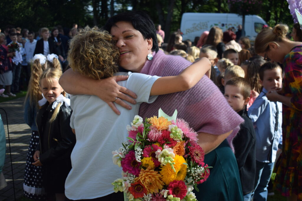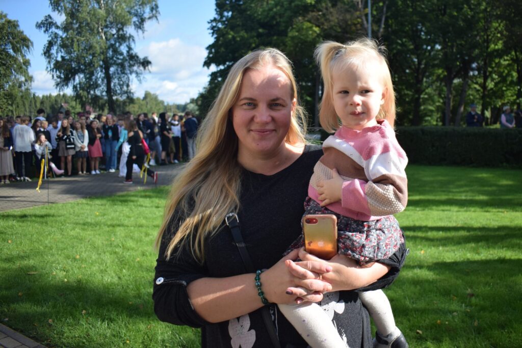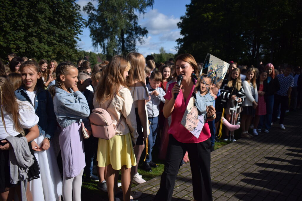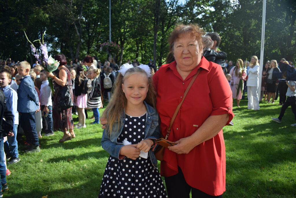 Zālienā bija izkārtojušies klašu kolektīvi, bet mazliet tālāk stāvēja bērnu vecāki un vecvecāki. Skolēni bija saposušies un priecīgi, noilgojušies pēc draugiem un sen neredzētiem klases biedriem, tāpēc bija grūti nesarunāties un visu uzmanību veltīt notiekošajam uz skolas kāpnēm, kur vietu bija ieņēmusi izglītības iestādes vadība – direktors un viņa vietnieces.